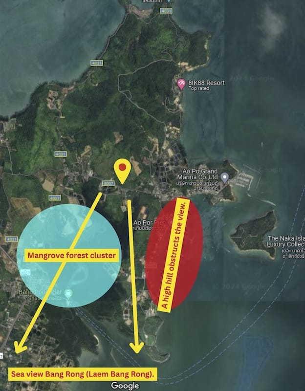 This expansive plot offers the potential for a remarkable development opportunity, allowing for the construction of a 7-story building towering up to 23 meters high. With three floors or more, this development promises captivating sea views from the Bang Rong side (Laem Bang Rong).