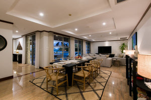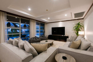 This fully-furnished villa is contemporary in style with modern & comfortable furniture and stylish artwork. It features 3 large bedrooms with ensuite bathrooms and a 4th room currently used as a dedicated TV/relaxation.