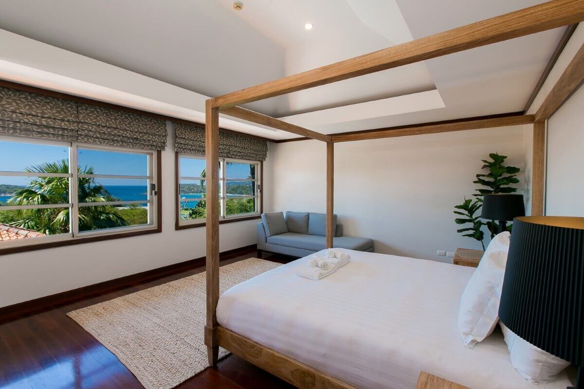 This 4 bedroom sea view pool villa for sale near Kata Noi and Kata Beach in Phuket was just renovated in January 2024. The property is quite private, tucked away on a hillside and sitting elegantly amongst lush tropical vegetation.