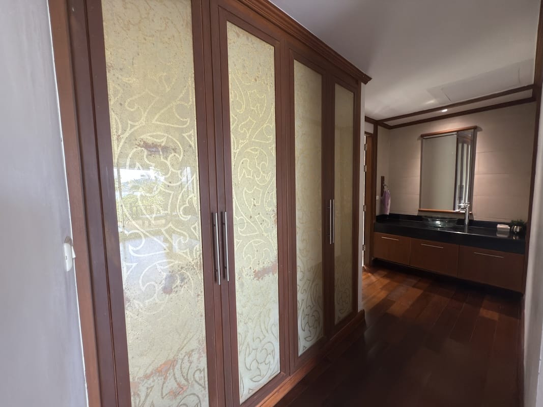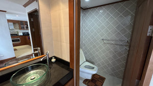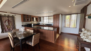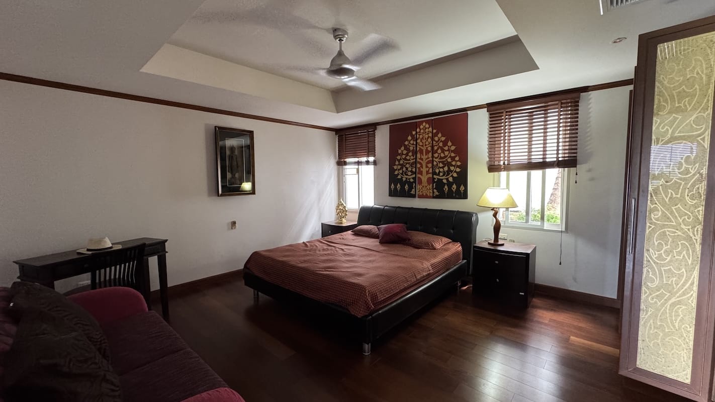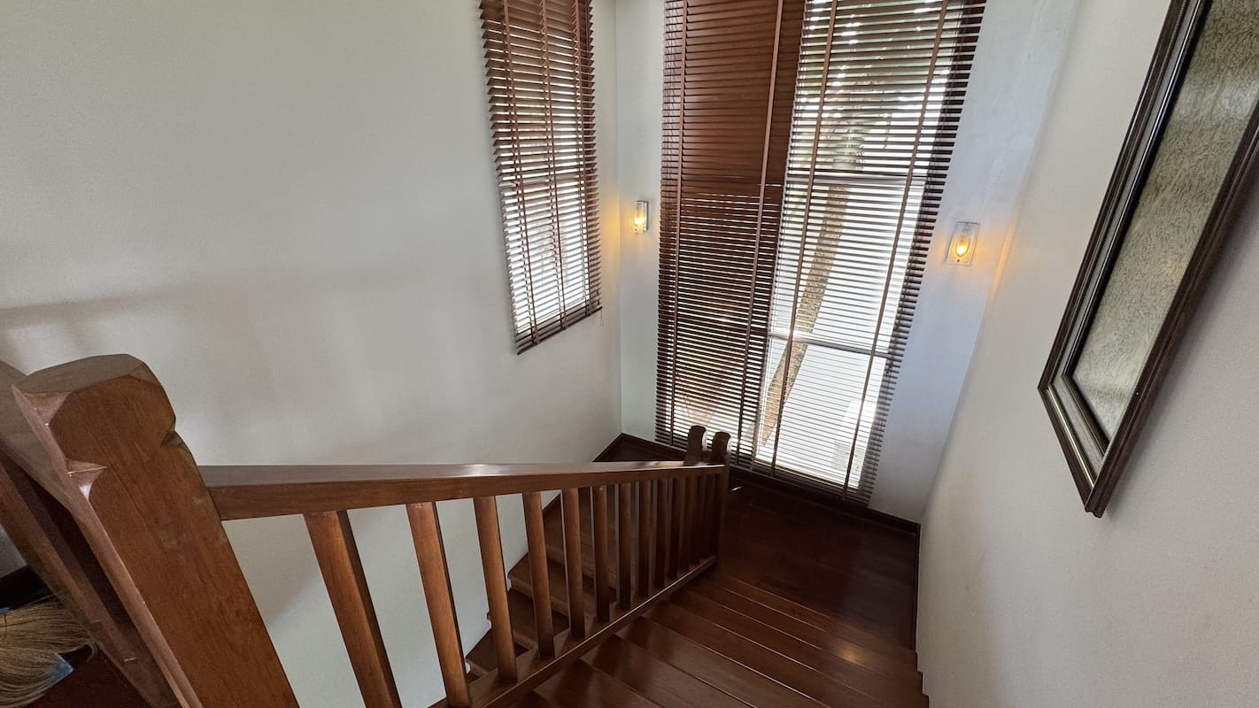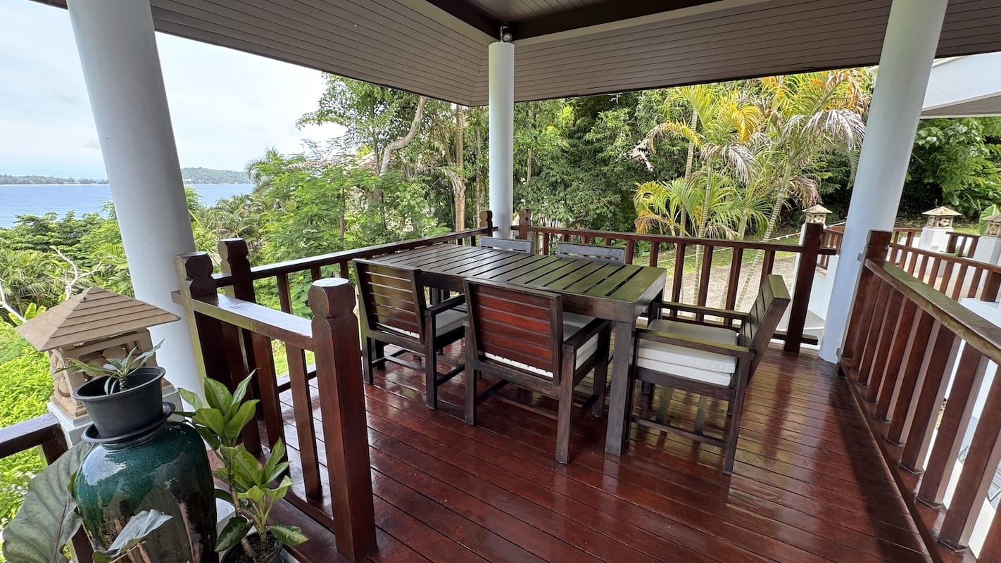 Spanning approximately 440 sqm across two floors, the villa features a seamless mix of modern and traditional Thai architecture. The upper level welcomes you with a covered car park, a bright living area, and a fully equipped Western kitchen. A guest toilet adds convenience, while the spacious terrace invites relaxation with its stunning sea views.