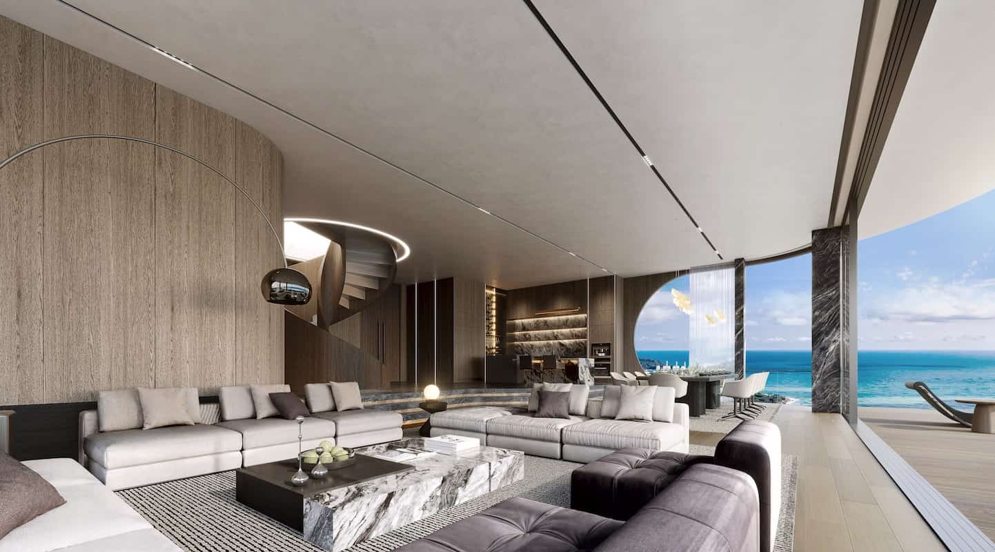 Step inside, and the interiors continue to impress. Warm wooden ceilings, subtle stone accents, and lush indoor greenery create a soothing, organic contrast to the sleek modern lines. The open-plan living and dining areas are strategically placed to frame uninterrupted ocean views, making everyday life feel like a resort experience.