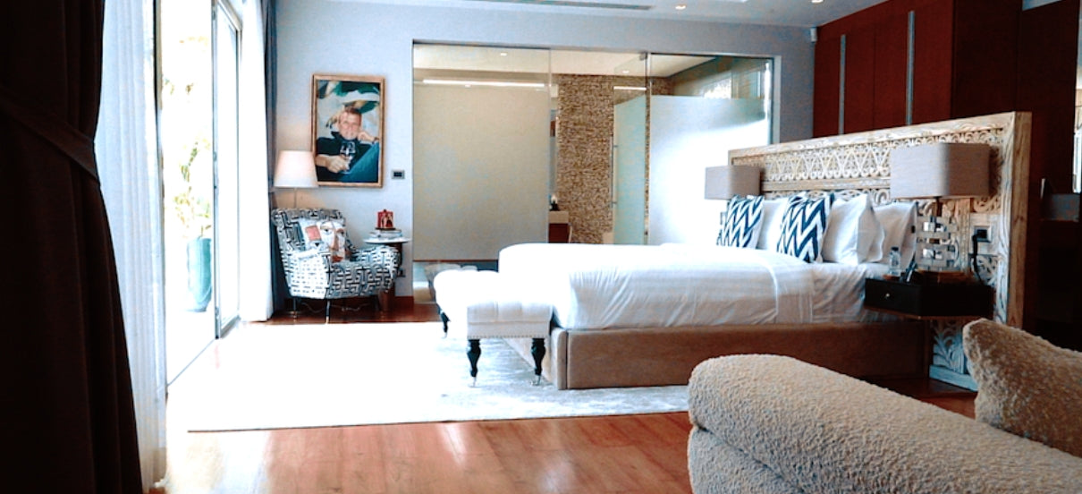 The living area opens to a large covered terrace, private jacuzzi and 4x12 m. Infinity swimming pool as well as a lovely landscaped garden.
