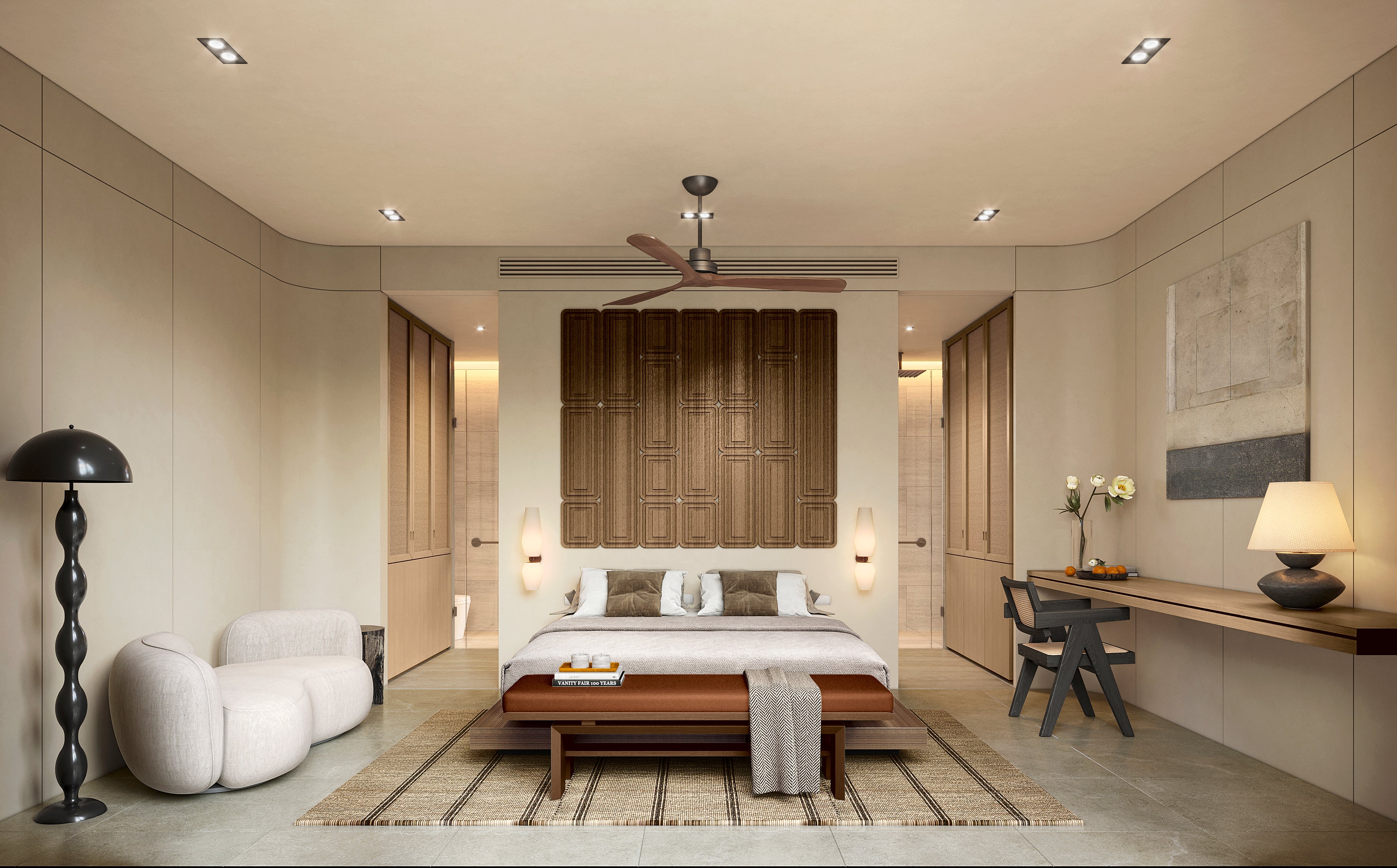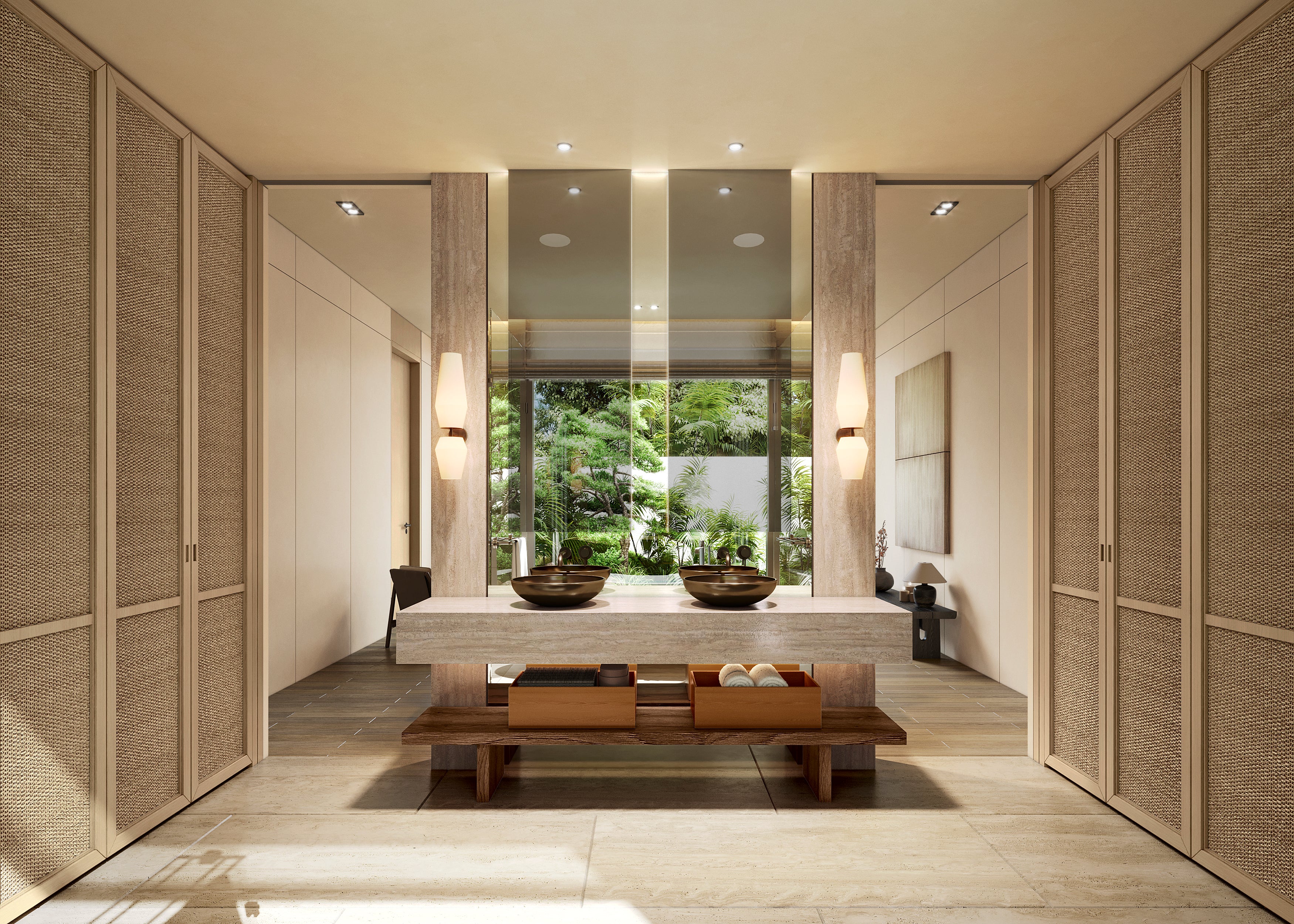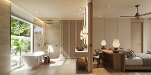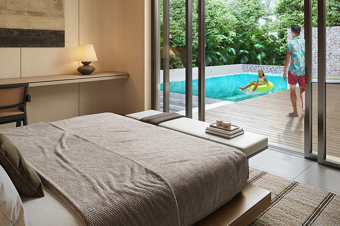 Each villa has four bedrooms, all with ensuite bathrooms. Depending on the villa, one or two of these bedrooms are master suites, featuring larger bathrooms with dual sinks and bathtubs. The layout is ideal for families, with the two guest bedrooms located towards the rear of the villa, offering both safety for children and privacy for guests.