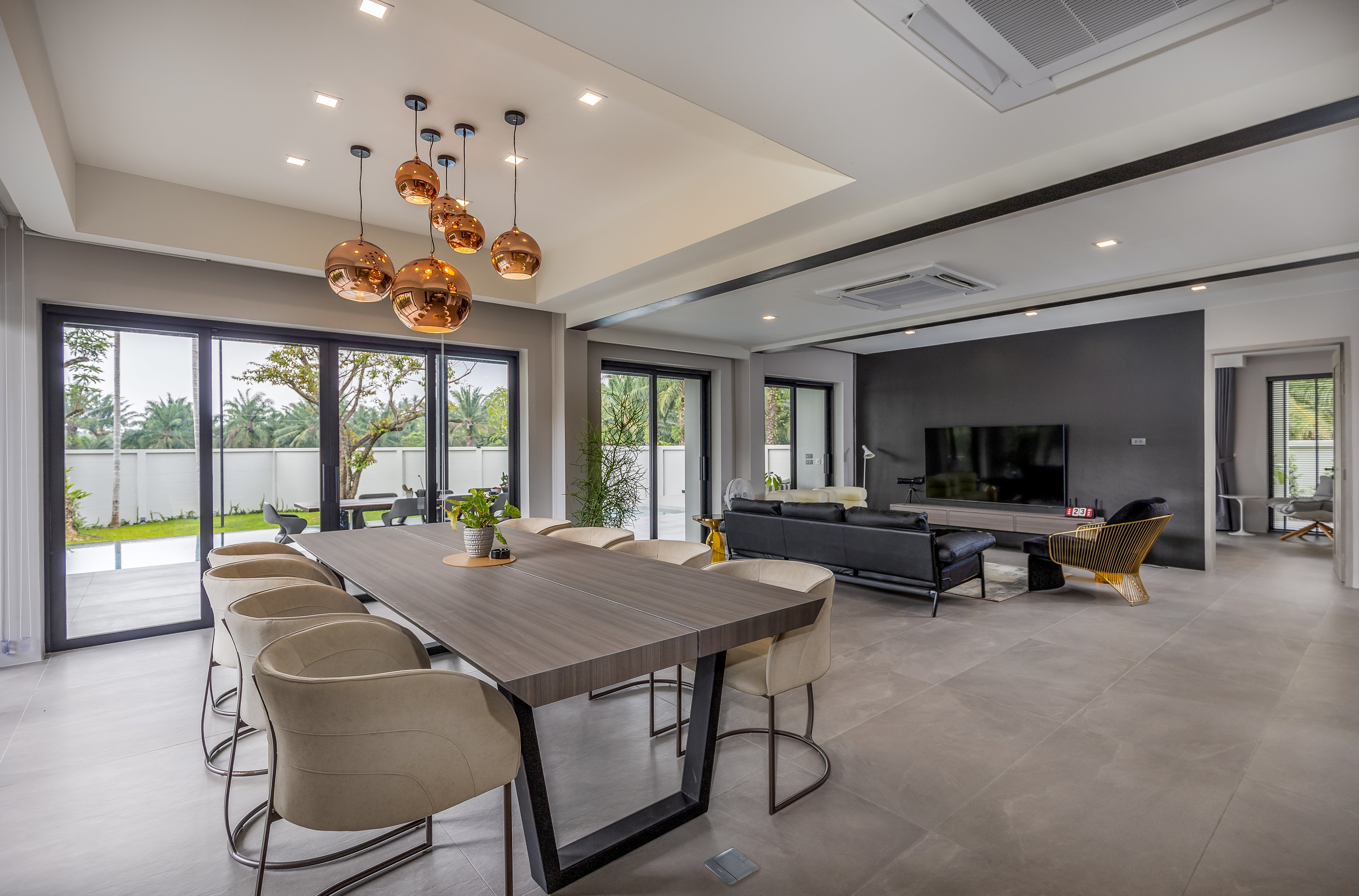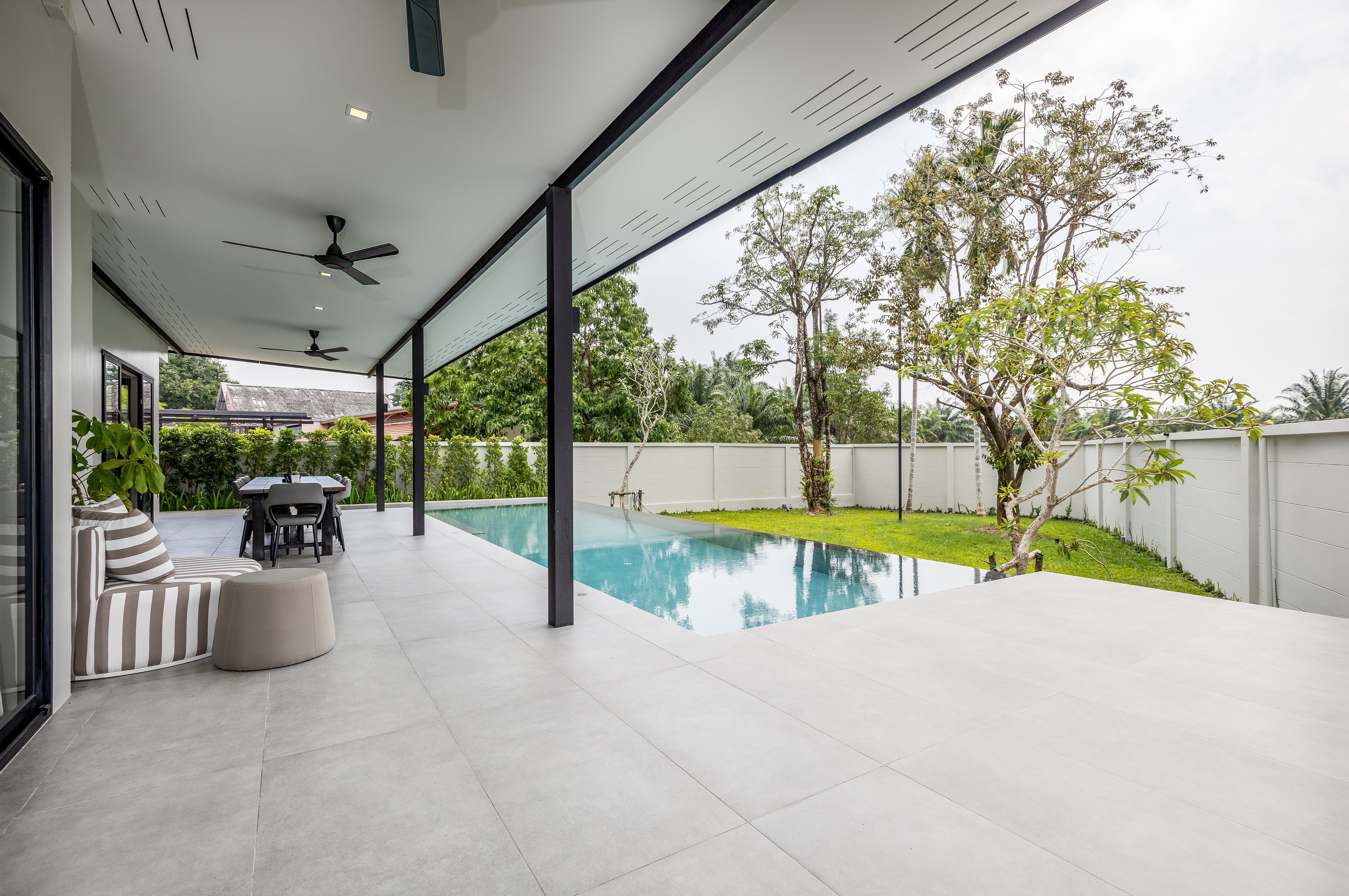 The villa’s thoughtful layout caters to a dynamic lifestyle, with two luxurious master suites—one conveniently located on the ground floor—and two additional bedrooms, all featuring their own private en-suite bathrooms. This ensures privacy and comfort for every member of the household. The heart of the home is the open-plan living area, where a full Western kitchen flows seamlessly into the main living spaces and out to the expansive terrace, creating a flawless indoor-outdoor experience perfect for entertaining. The private outdoor sanctuary is a true highlight, boasting a stunning 12-meter saltwater private pool villa and a vast, meticulously landscaped garden. This secure, fully walled oasis offers a safe haven for children to play and the potential for future additions, such as a guest cottage or home office.