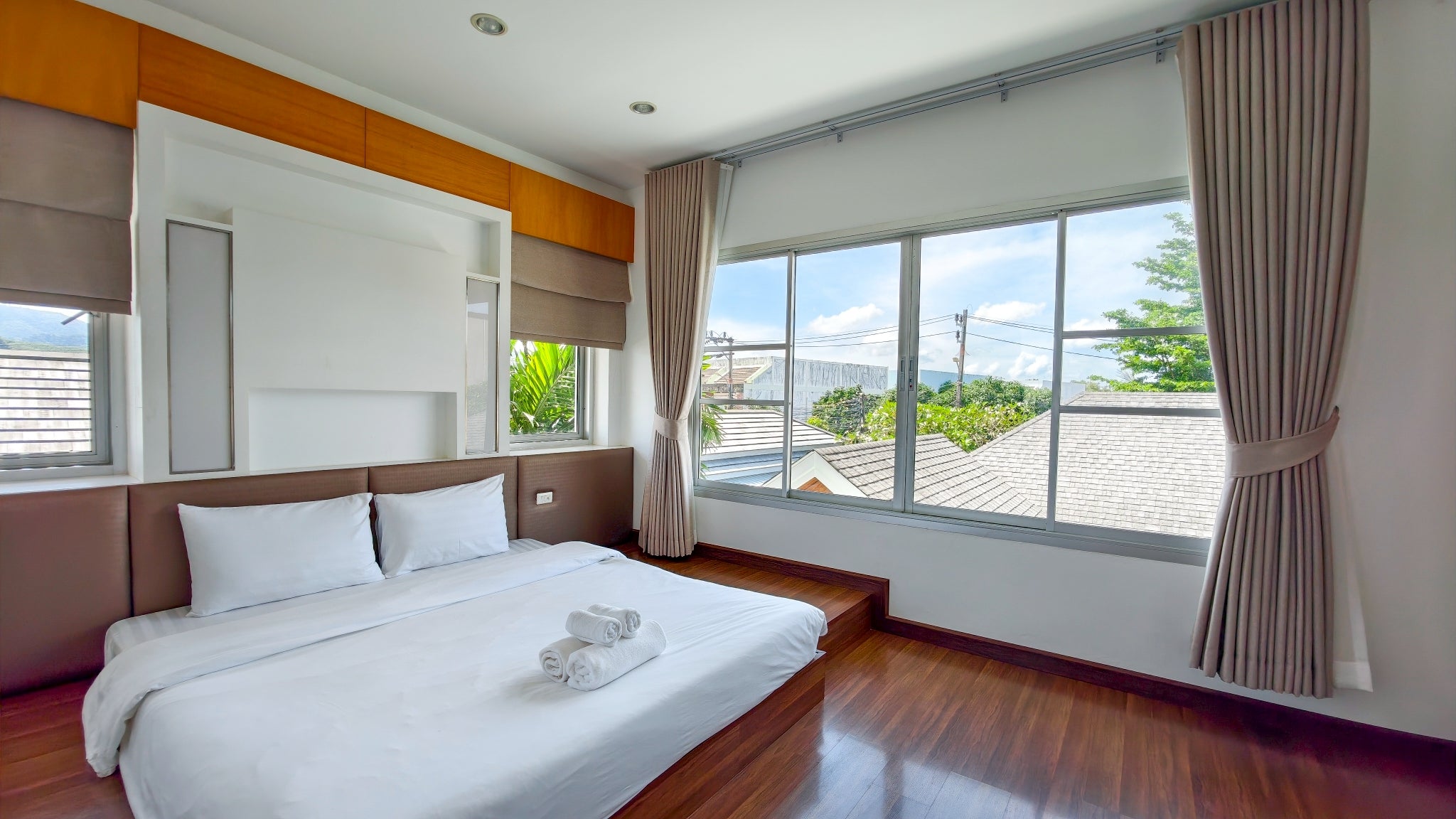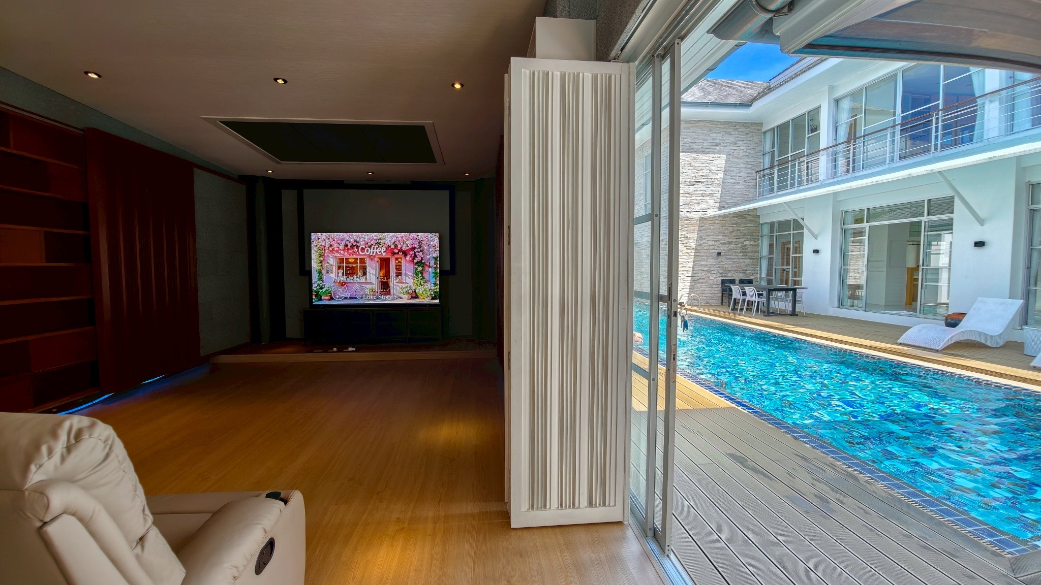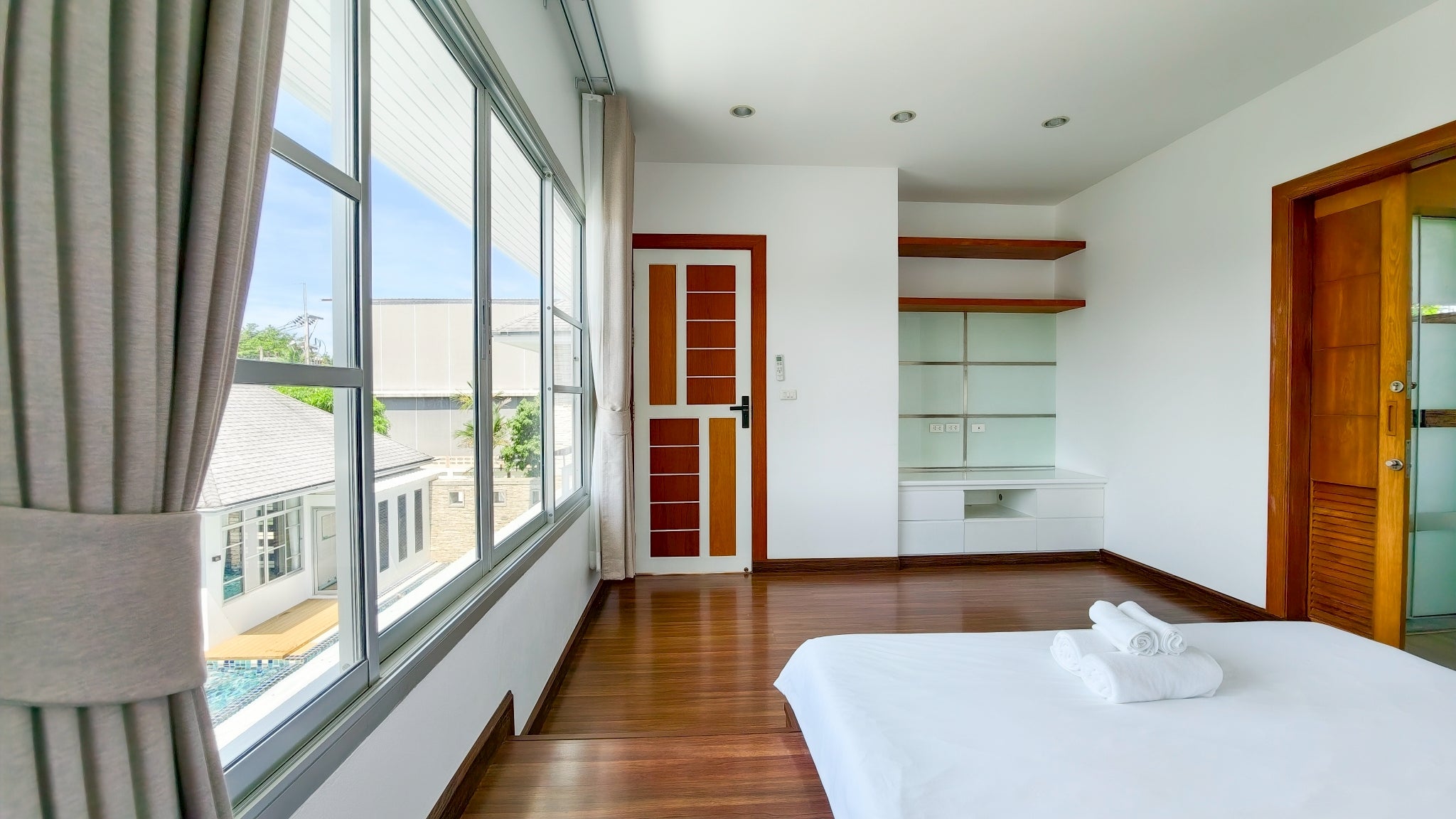 The villa’s interior is a showcase of sophisticated design, thoughtfully arranged to cater to every need. It boasts four expansive bedrooms, four modern bathrooms, and a convenient guest toilet, ensuring privacy and convenience for all. For entertainment and leisure, a fully equipped theater room provides the ultimate cinematic experience. The property further distinguishes itself with two dedicated kitchens: a sleek Western kitchen for modern culinary pursuits and a separate, highly practical Thai kitchen designed for traditional cooking without compromising the main living areas. This dual-kitchen setup is a hallmark of truly luxurious homes and enhances both daily life and entertaining.