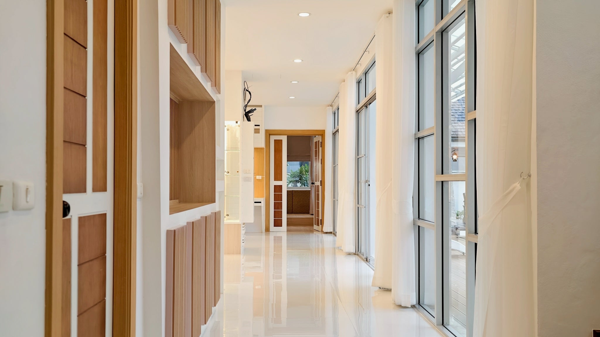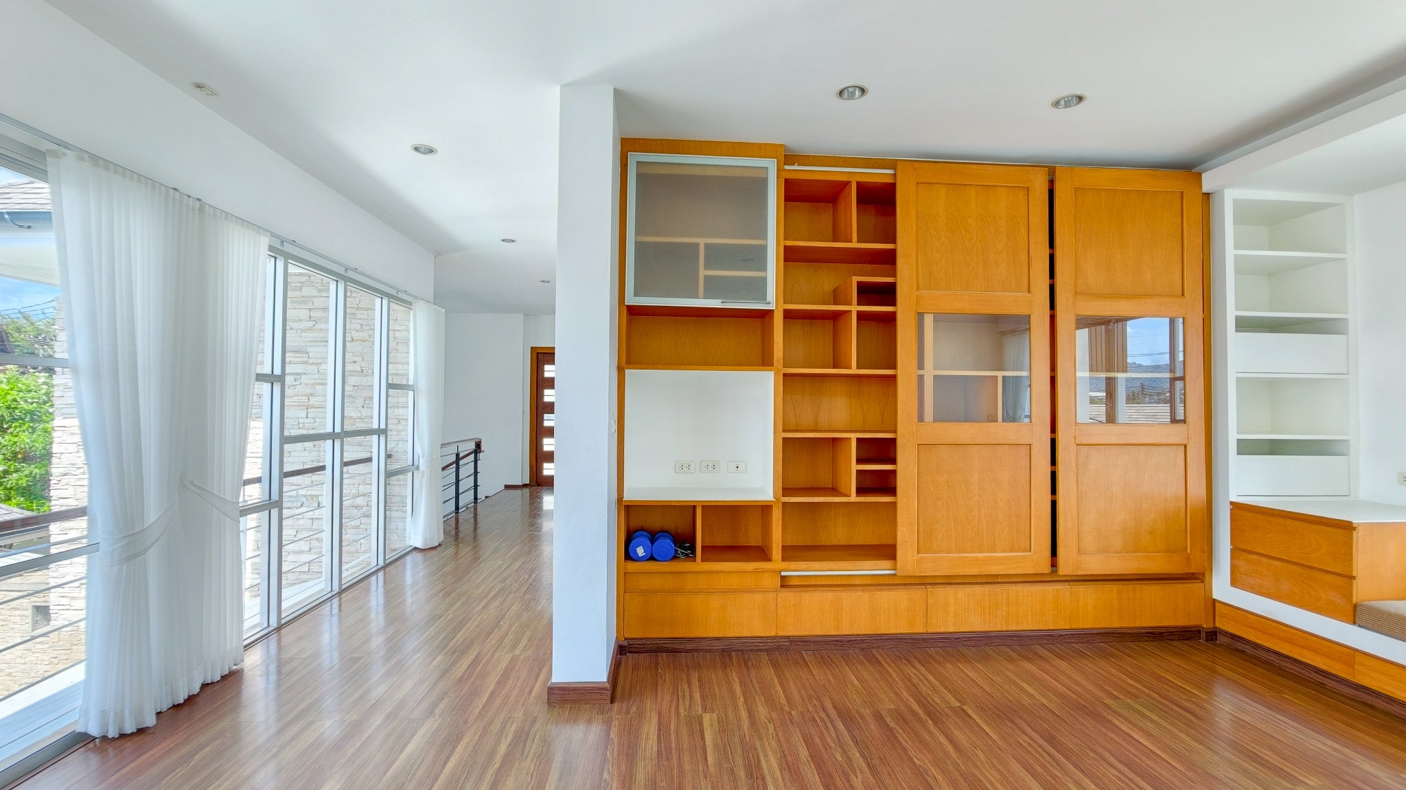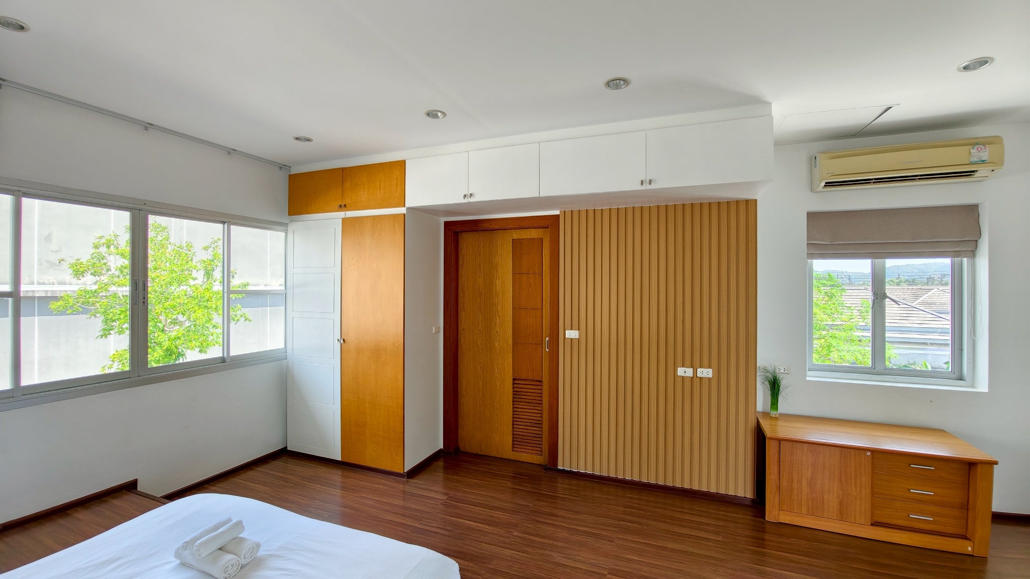 The villa’s interior is a showcase of sophisticated design, thoughtfully arranged to cater to every need. It boasts four expansive bedrooms, four modern bathrooms, and a convenient guest toilet, ensuring privacy and convenience for all. For entertainment and leisure, a fully equipped theater room provides the ultimate cinematic experience. The property further distinguishes itself with two dedicated kitchens: a sleek Western kitchen for modern culinary pursuits and a separate, highly practical Thai kitchen designed for traditional cooking without compromising the main living areas. This dual-kitchen setup is a hallmark of truly luxurious homes and enhances both daily life and entertaining.
