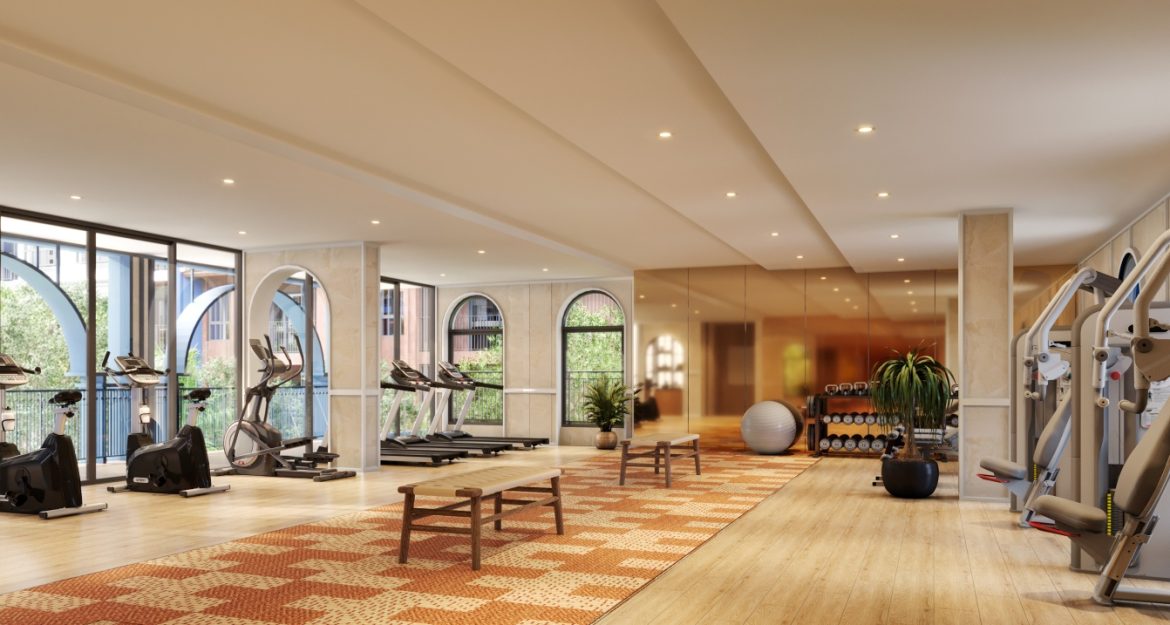 For those who want to stay active, a bright and vibrant fitness center with a cool coastal feel awaits, with wood floors for comfort and a burst of energetic orange from the carpet.