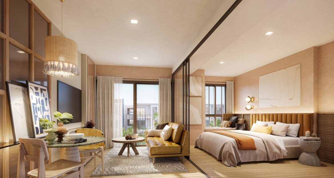 rom compact studio apartments measuring 25.00 to 25.75 sqm, to spacious one- or two-bedroom units that reach 66.25 sqm, all the way to exclusive villas offering up to 75.50 sqm of pure comfort."