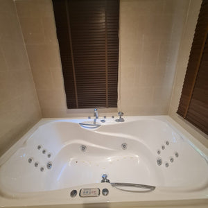 This generously sized condo spans 148 square meters. It features two comfortable bedrooms and two modern bathrooms. The master bedroom includes a luxurious private Jacuzzi. Additionally, the second bedroom features a convenient bathtub. Therefore, both rooms provide a personal spa-like retreat.