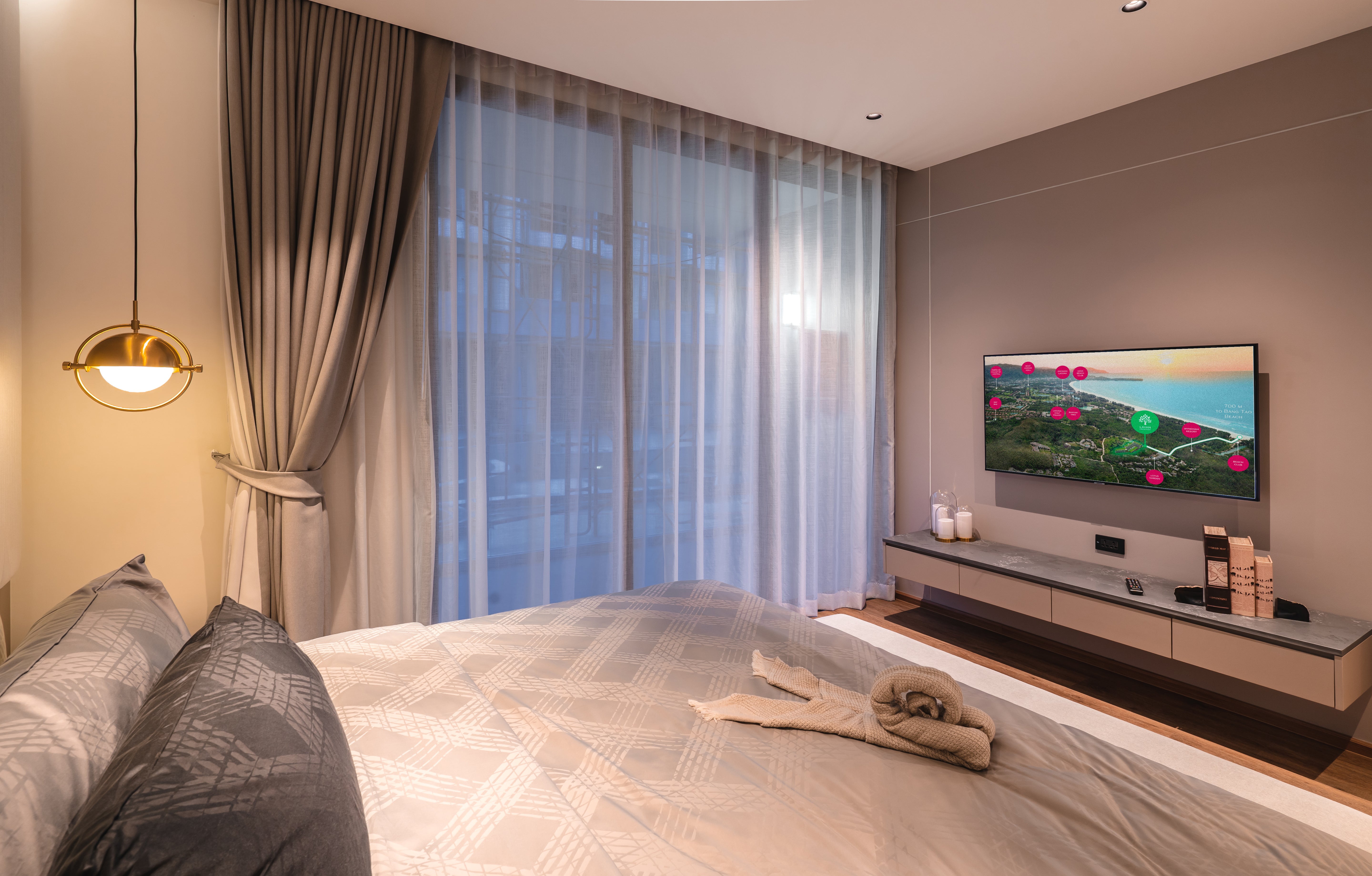 This luxury condominium is ideally located just 700 meters from Bang Tao Beach and 800 meters from Layan Beach, near Laguna Phuket and Boat Avenue – Phuket’s most prestigious lifestyle hubs. Surrounded by world-class resorts, golf courses, spas, and restaurants, it offers unmatched convenience and leisure.