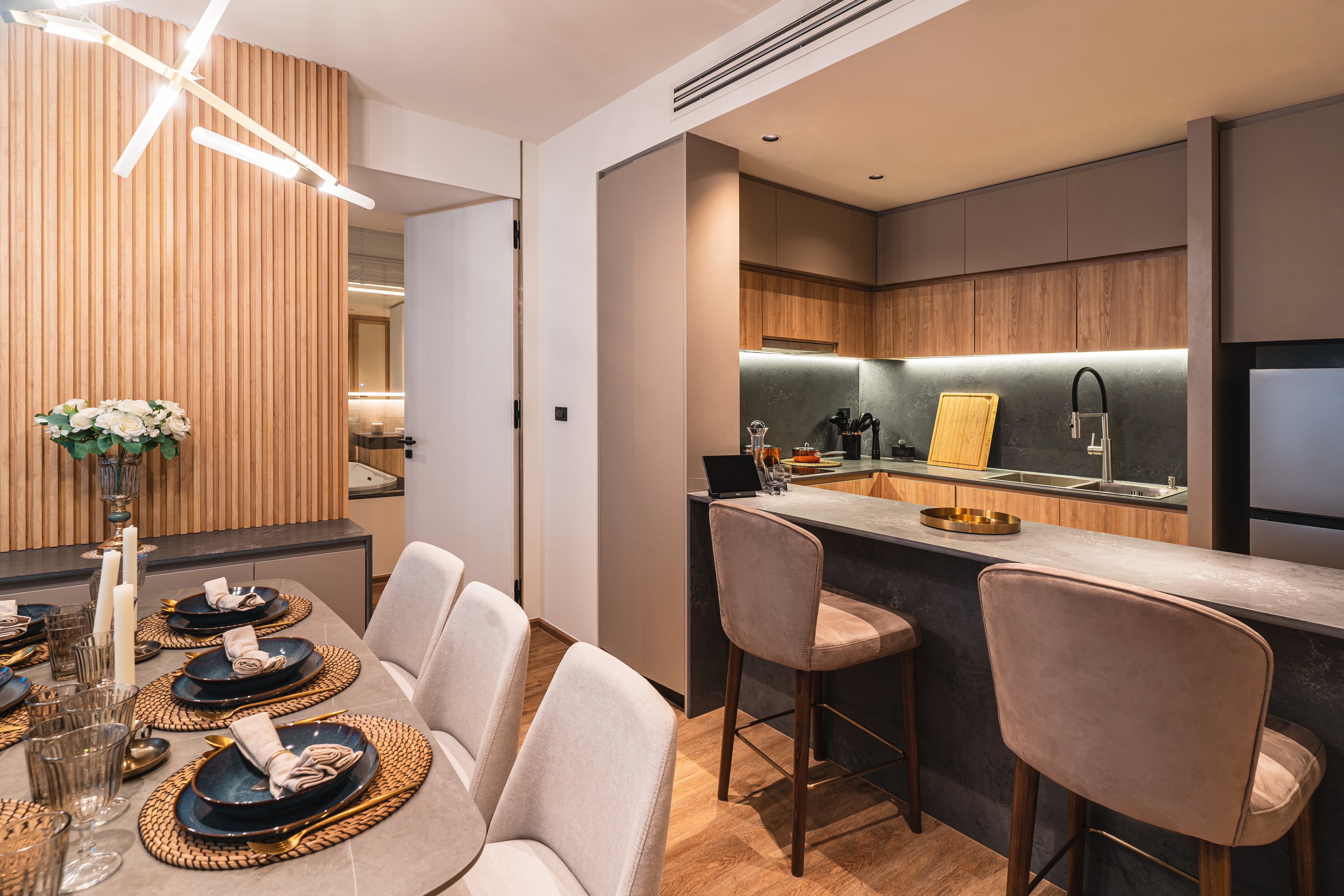 Residents enjoy a full range of premium facilities including a spa, sauna, gym, pool, restaurant, and kids’ club.Beautiful landscaped gardens add tranquility throughout the entire development.
