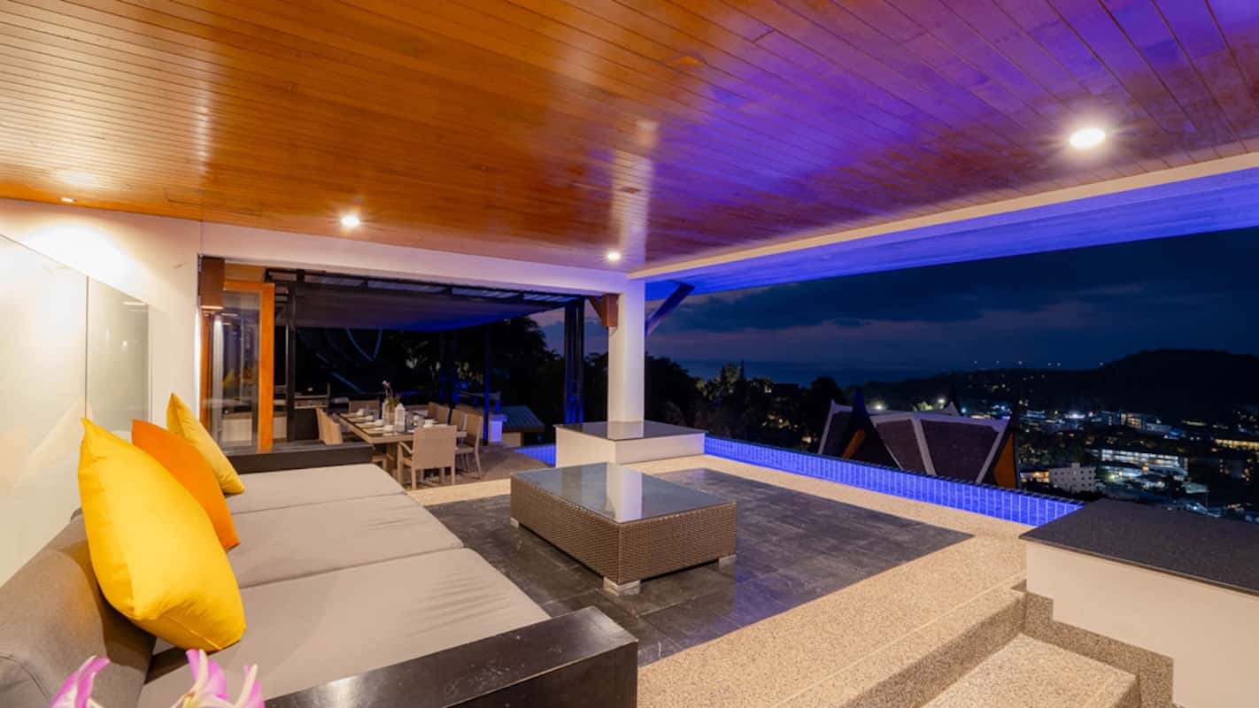 Featuring five spacious bedrooms and eight elegantly appointed bathrooms, this villa offers an unrivaled hilltop sanctuary. The 18-metre infinity pool and private Jacuzzi provide breathtaking panoramic views of Bang Tao Beach, while the villa’s three traditional Thai pavilions add a sense of timeless heritage to its modern design.