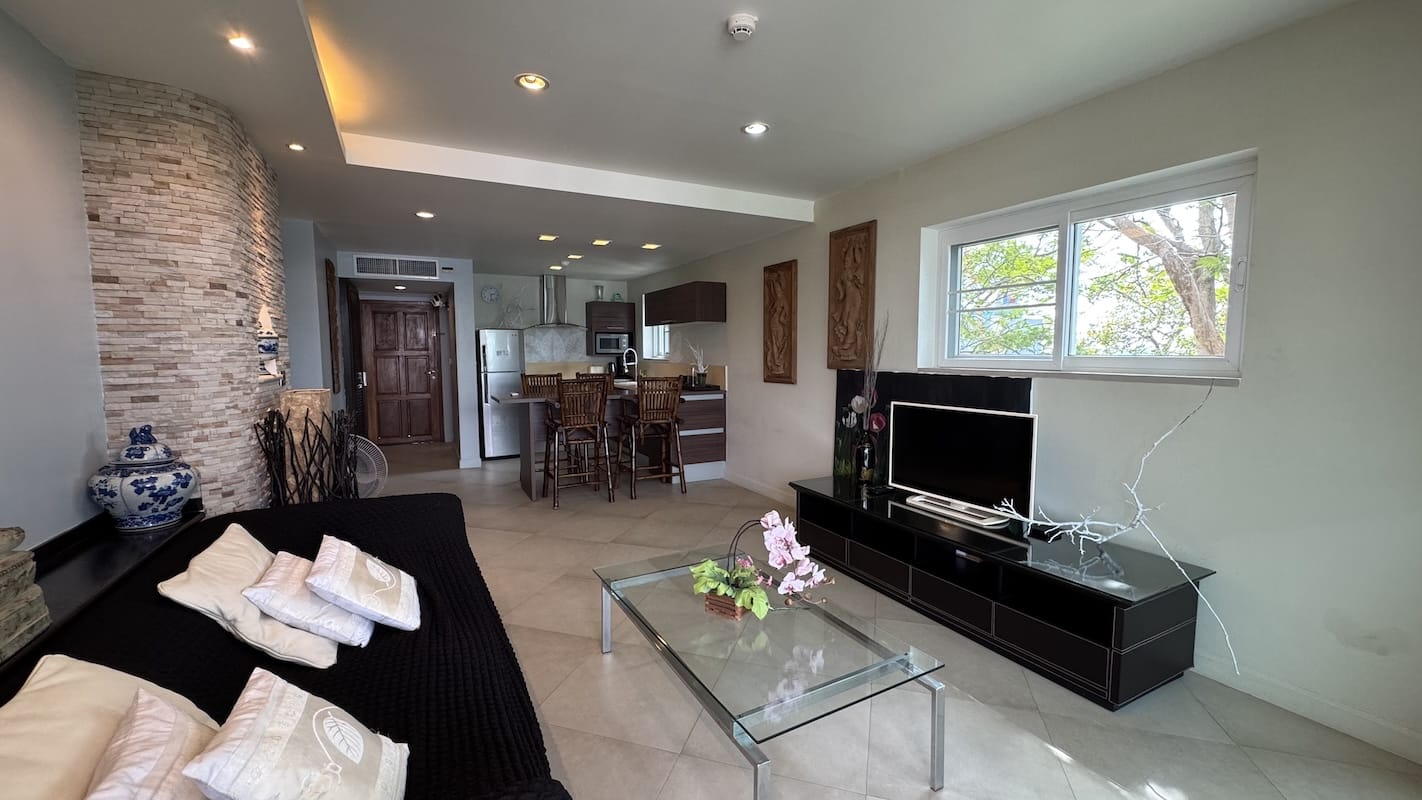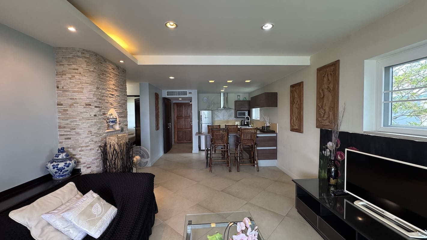 Located on the second floor of a low-rise building, this Karon Beach condo for sale comes fully furnished, ready for you to move in hassle-free. The interior features: