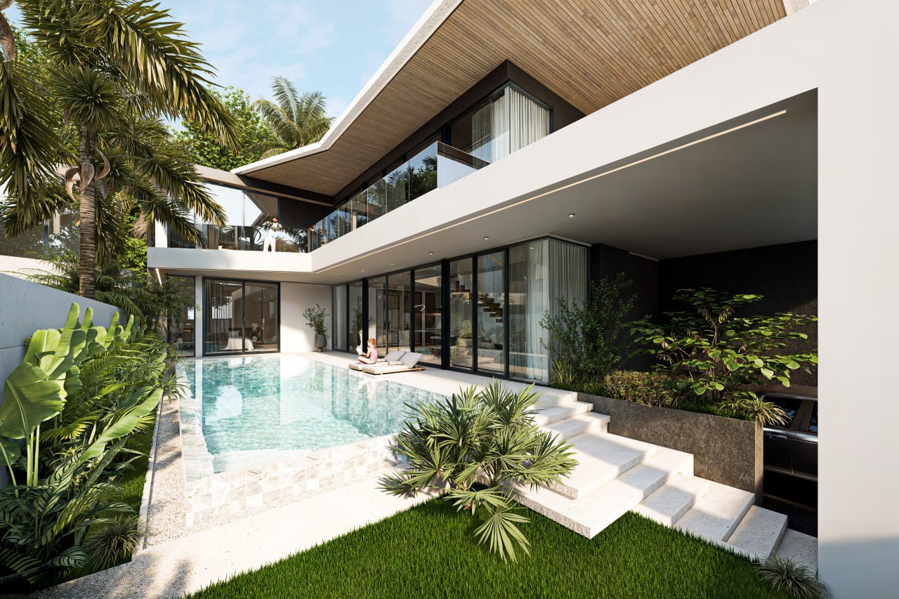 This stunning luxury villa in Phuket offers a perfect balance of tropical serenity and modern sophistication. Spanning 350 square meters over two elegant floors, the villa features four spacious bedrooms, four contemporary bathrooms, and a private swimming pool that becomes the heart of the home. Designed in a modern tropical style, the interiors flow seamlessly into the outdoor areas, creating bright, open spaces ideal for entertaining, family gatherings, or peaceful relaxation. High-end finishes, natural materials, and thoughtful design elevate every corner, while the private pool and landscaped surroundings provide a sanctuary of comfort and exclusivity. Fully completed and ready to move in, this villa represents an effortless entry into refined island living.