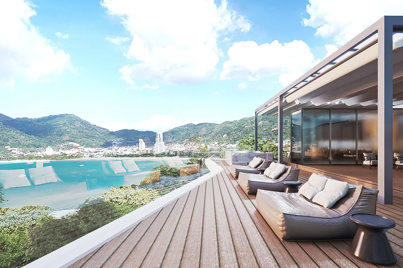 The Grand Penthouse at Patong sets a new standard for elevated island living in Phuket. Designed to combine sophistication with comfort, this expansive residence showcases modern architecture, sweeping layouts, and elegant finishes that capture the essence of luxury living. Floor-to-ceiling windows invite abundant natural light while offering panoramic views across Patong and the Andaman Sea, creating a living environment that is as breathtaking as it is serene. With spacious interiors, private outdoor areas, and a design that balances privacy with open social spaces, this penthouse is both a sanctuary and a statement of refined taste.