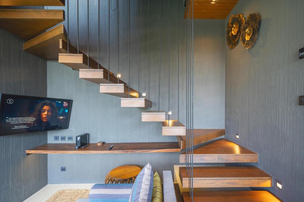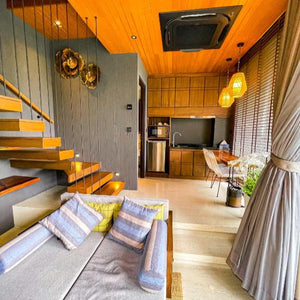 Experience luxury living in our stunning 100 m² One Bedroom Duplex Villa, featuring a private pool. This elegantly designed accommodation offers a spacious layout with a separate bedroom featuring a king-size bed, a comfortable living room with a sofa bed, and a well-appointed bathroom complete with modern fixtures and complimentary toiletries. The villa's soundproof design ensures perfect tranquility, while the air conditioning system maintains ideal comfort throughout your stay.