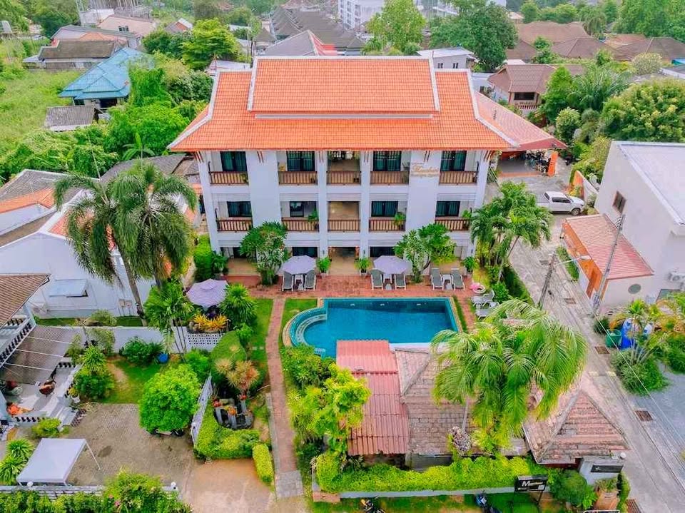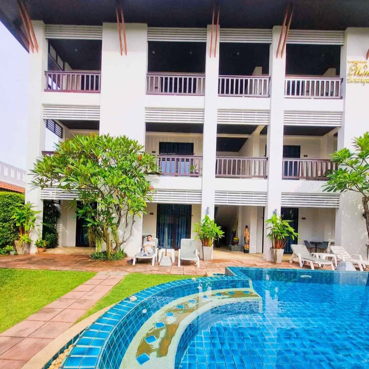 The resort spans over one rai of land (more than 1,600 square meters) and is designed to accommodate both management and guests with ease. The estate includes a spacious main house featuring a large living room, kitchen, bathroom, and one bedroom that can be converted into two. A three-storey boutique building with twelve guest rooms is fully fitted and ready to generate income immediately. Additional facilities include a dedicated restaurant space, a smaller house with an en-suite bathroom that could easily be transformed into a café, and a large swimming pool that enhances the resort-style experience for guests.