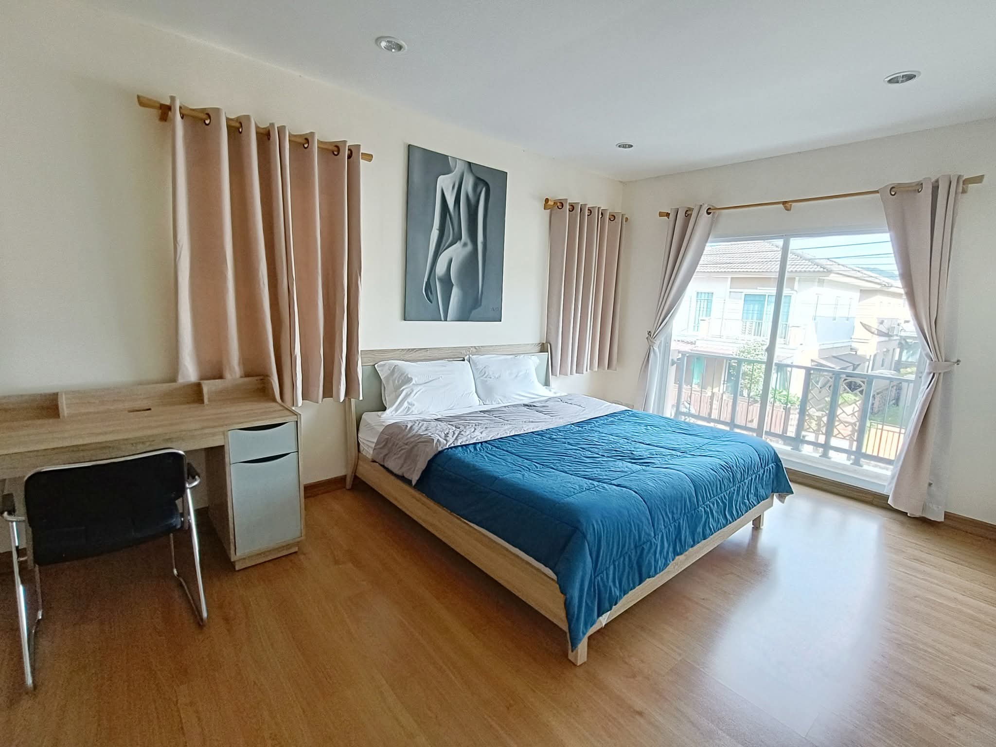Discover a life of comfort and convenience in the heart of Phuket at this charming 3-bedroom detached house in the serene Passorn Kathu community. This home offers the perfect balance of peaceful suburban living and easy access to all of the island's most exciting amenities. Ideal for a family or group of professionals, this Kathu house for rent is a fantastic find in the bustling Phuket real estate market. The fully furnished interior is thoughtfully laid out for immediate occupancy, with two bedrooms fully equipped for your comfort and a third empty room offering the flexibility to be a home office, a children's playroom, or a creative space. This is a truly comfortable and secure family house Phuket, ready to welcome you.