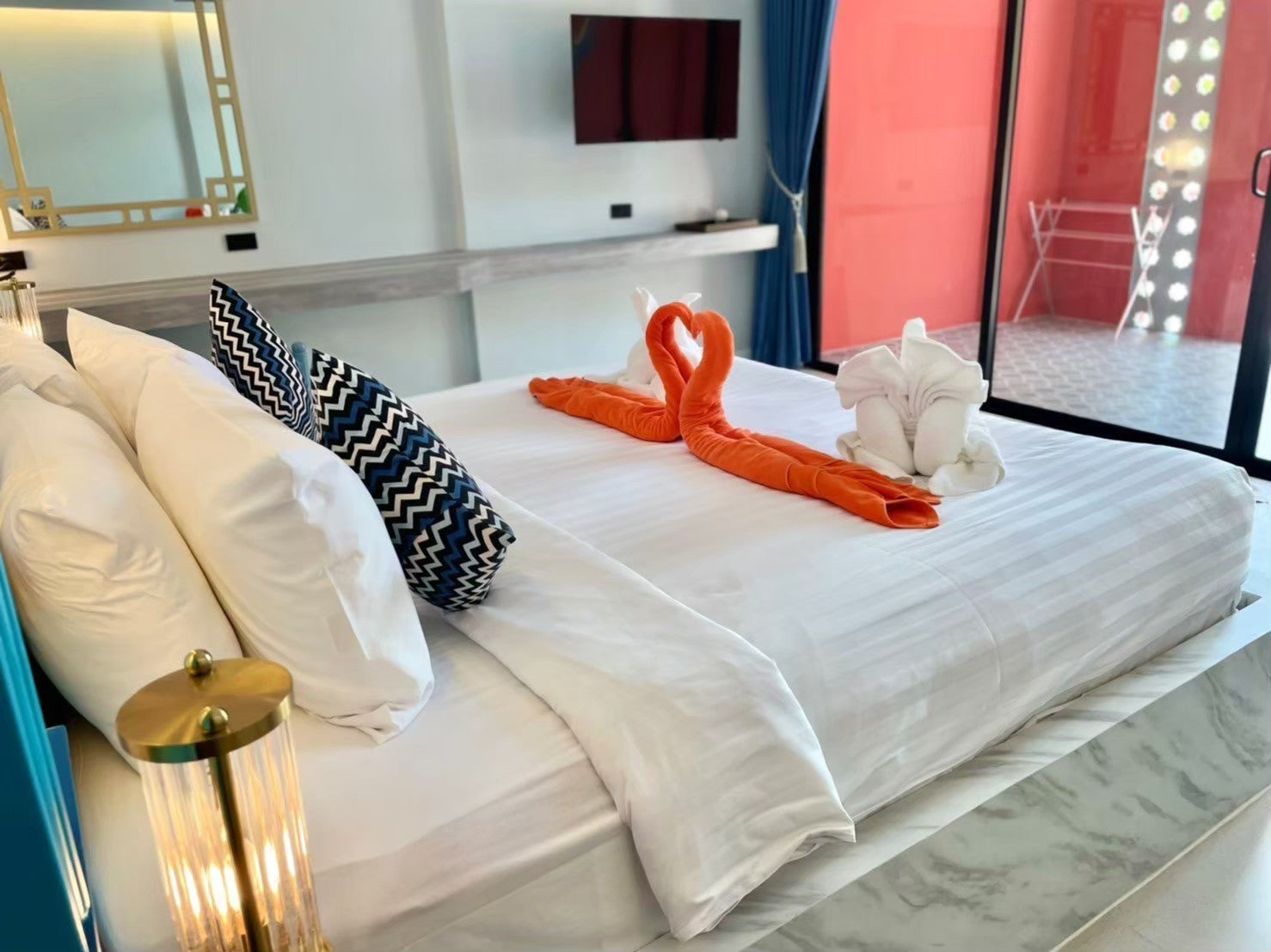 Perfect for couples or solo travelers, the room blends comfort with a contemporary aesthetic, featuring a plush king-size bed, spacious seating area, and floor-to-ceiling windows that open directly to refreshing poolside views.