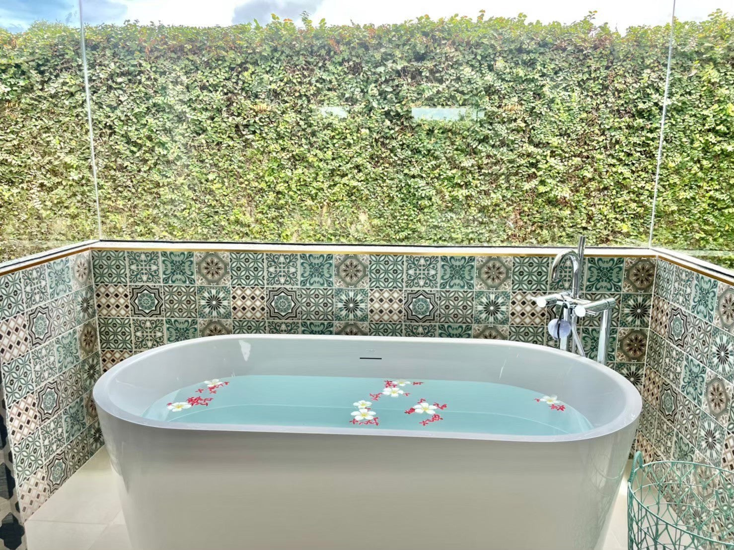 Indulge in a serene escape at our King Room with Pool View, offering 55 square meters of living space and modern amenities for the ultimate tropical retreat. Situated in the exclusive Red Pool area, every room is thoughtfully designed just steps away from the vibrant communal red-tiled swimming pool, allowing you to unwind in style and convenience.