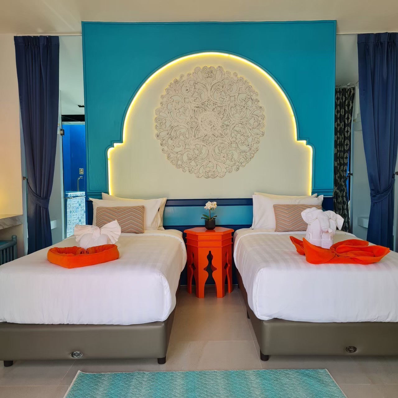 Discover the perfect blend of comfort and convenience in our Twin Room with Pool View, offering 55 square meters of thoughtfully designed living space. Located in the serene Red Pool zone, each room is positioned just steps from the vibrant communal red-tiled swimming pool, creating a peaceful oasis ideal for friends, travel companions, or solo travelers.