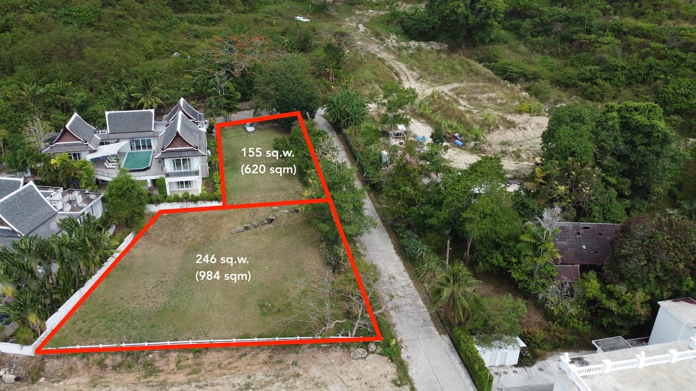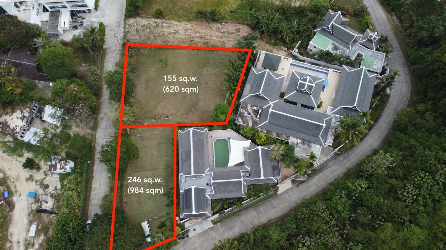 This exclusive opportunity includes two vacant land plots, each with a Nor Sor Sam Kor title deed and owned under a Thai LLC. The first plot spans 155 square wah (620 square meters), while the second covers 246 square wah (984 square meters). Together, they total 1 rai or 1,604 square meters, providing ample space for your vision.