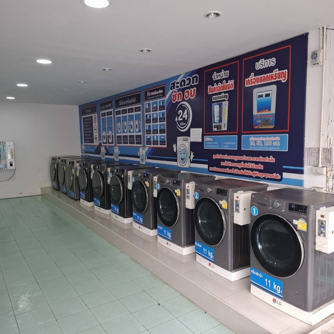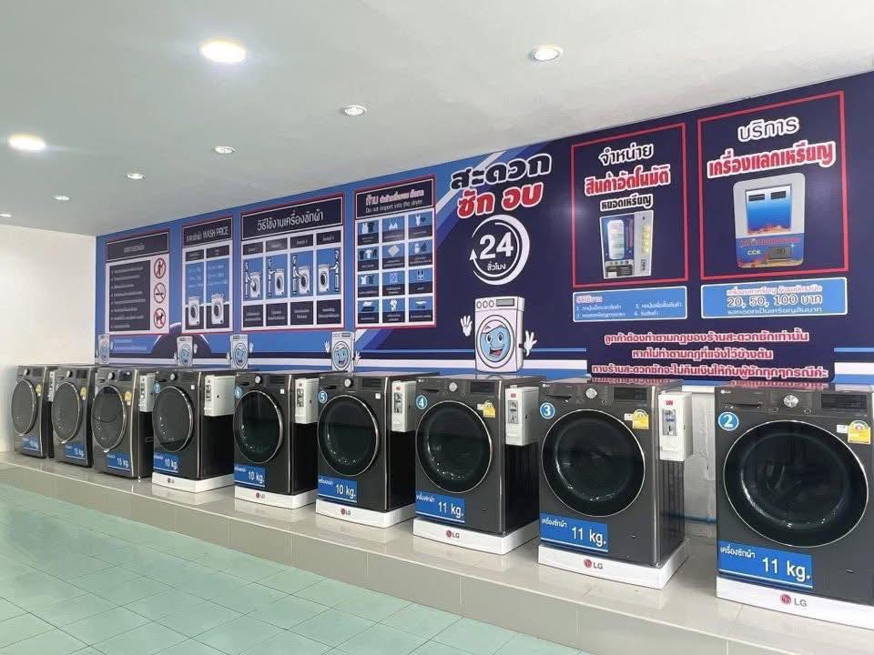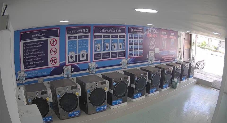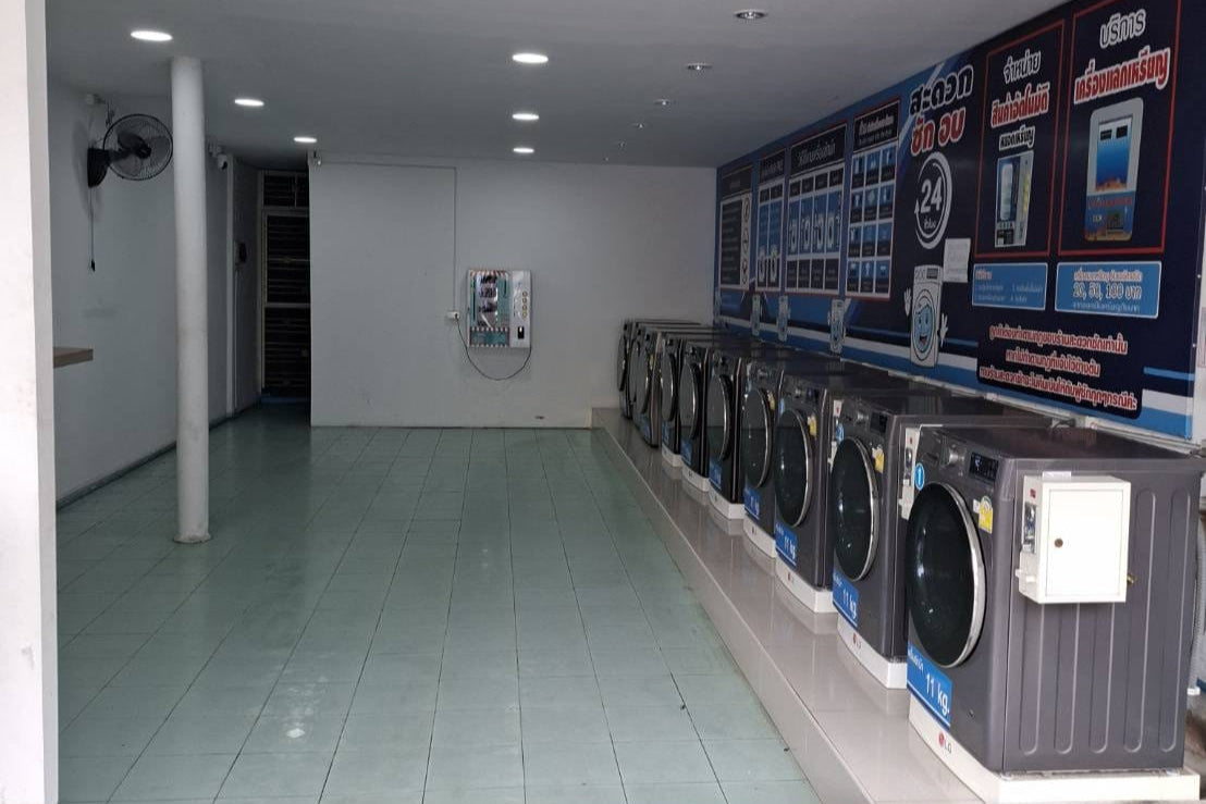 The premises include two bedrooms and two bathrooms, offering flexibility for living on-site or renting out the space for additional income. The front section of the shop can be leased separately as a retail outlet, while the rear area can be converted into rentable rooms at affordable rates, opening up multiple revenue streams. Equipment provided includes three 15kg washing machines, four 11kg washing machines, three 10kg dryers, a laundry detergent vending machine, water storage tank, CCTV, fans, and a complete counter setup. Utilities are straightforward with standard government water and electricity bills averaging only around 3,000 THB per month.