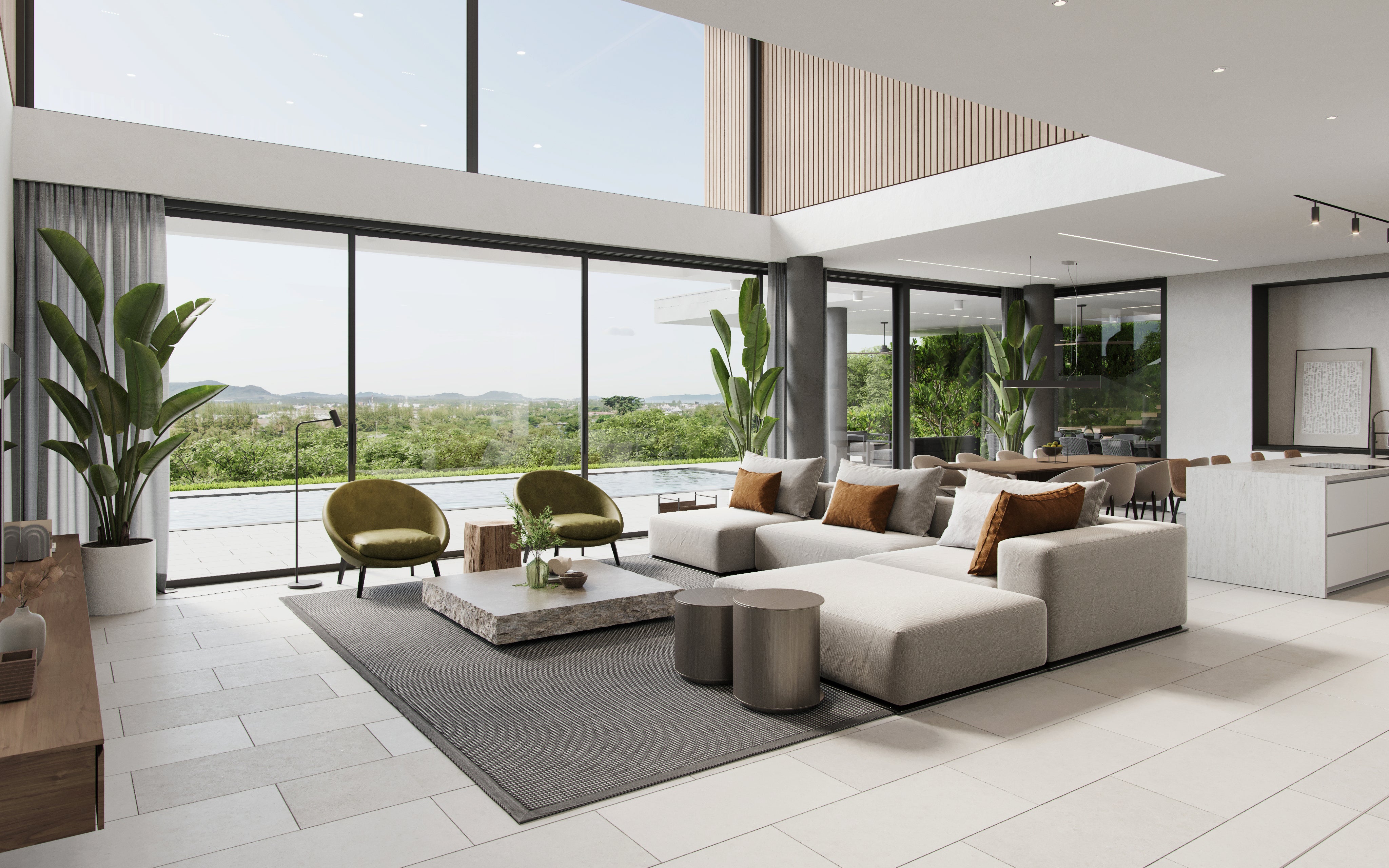The architectural ethos at Villas is centered around expansive, panoramic views and spacious interiors, steering clear of the confined spaces typical of other developments. The villas are enhanced by lofty, double-height ceilings and expansive windows that merge the beauty of the outdoors with the interiors, creating an idyllic living environment for those who cherish nature and openness. Each home is outfitted with high-end amenities including private swimming pools, luminous living and dining areas, contemporary kitchens, and extensive terraces, all designed to ensure a luxurious and comfortable lifestyle.