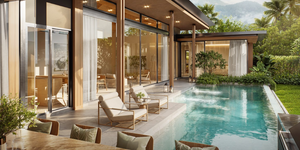 This beautifully crafted 3 bedroom, 4 bathroom private pool villa embodies contemporary tropical architecture with a refined, elegant touch. The spacious open-plan living and dining areas are designed for comfort and style, featuring high ceilings and large glass panels that bring in natural light and garden views. Each bedroom is an inviting sanctuary with luxurious ensuite bathrooms and premium finishes throughout. The villa’s seamless indoor outdoor flow leads to a sun soaked terrace and a sparkling private pool perfect for relaxing or entertaining in complete privacy. Residents can also enjoy a host of resort style facilities including a swimming pool, fitness center, sauna, children’s playground, and a welcoming lobby, ensuring a lifestyle of comfort and exclusivity.