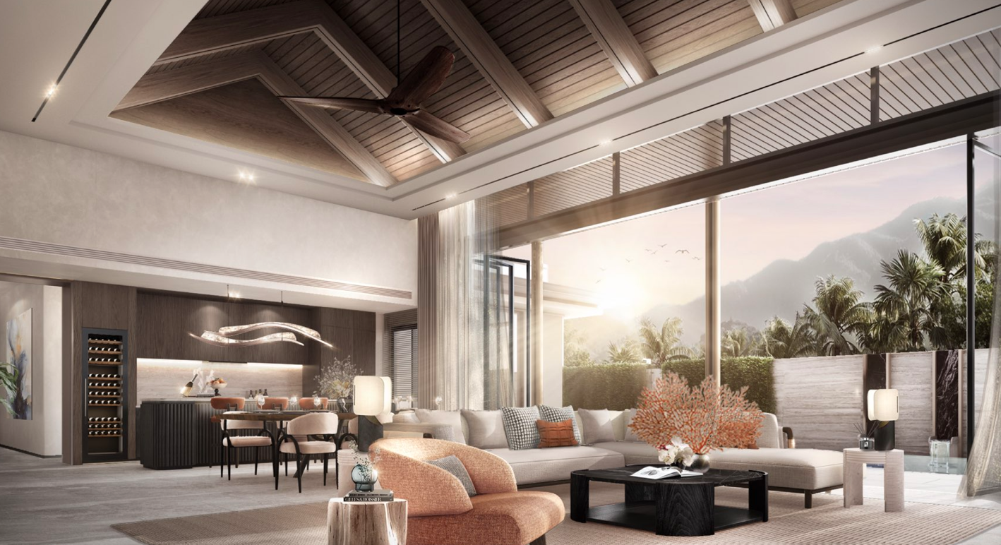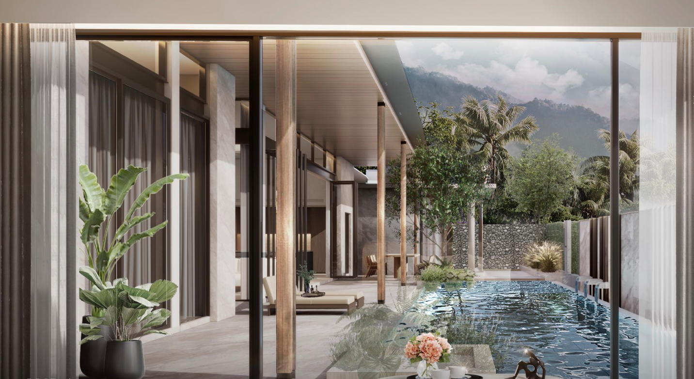 Designed with sophistication and functionality in mind, this magnificent 4 bedroom, 7 bathroom private pool villa spans 496 square meters of refined living space. The villa blends sleek modern architecture with tropical elegance, featuring high ceilings, open-plan layouts, and expansive glass panels that showcase the stunning seaviews. Each bedroom is a private sanctuary with luxurious ensuite bathrooms, while the master suite opens onto a terrace overlooking the infinity pool and the Andaman horizon. The villa’s spacious living and dining areas are complemented by a state of the art kitchen, ideal for entertaining or family gatherings. Residents enjoy exclusive facilities including a swimming pool, fitness center, sauna, children’s playground, and an elegant lobby, ensuring a lifestyle of comfort and leisure.