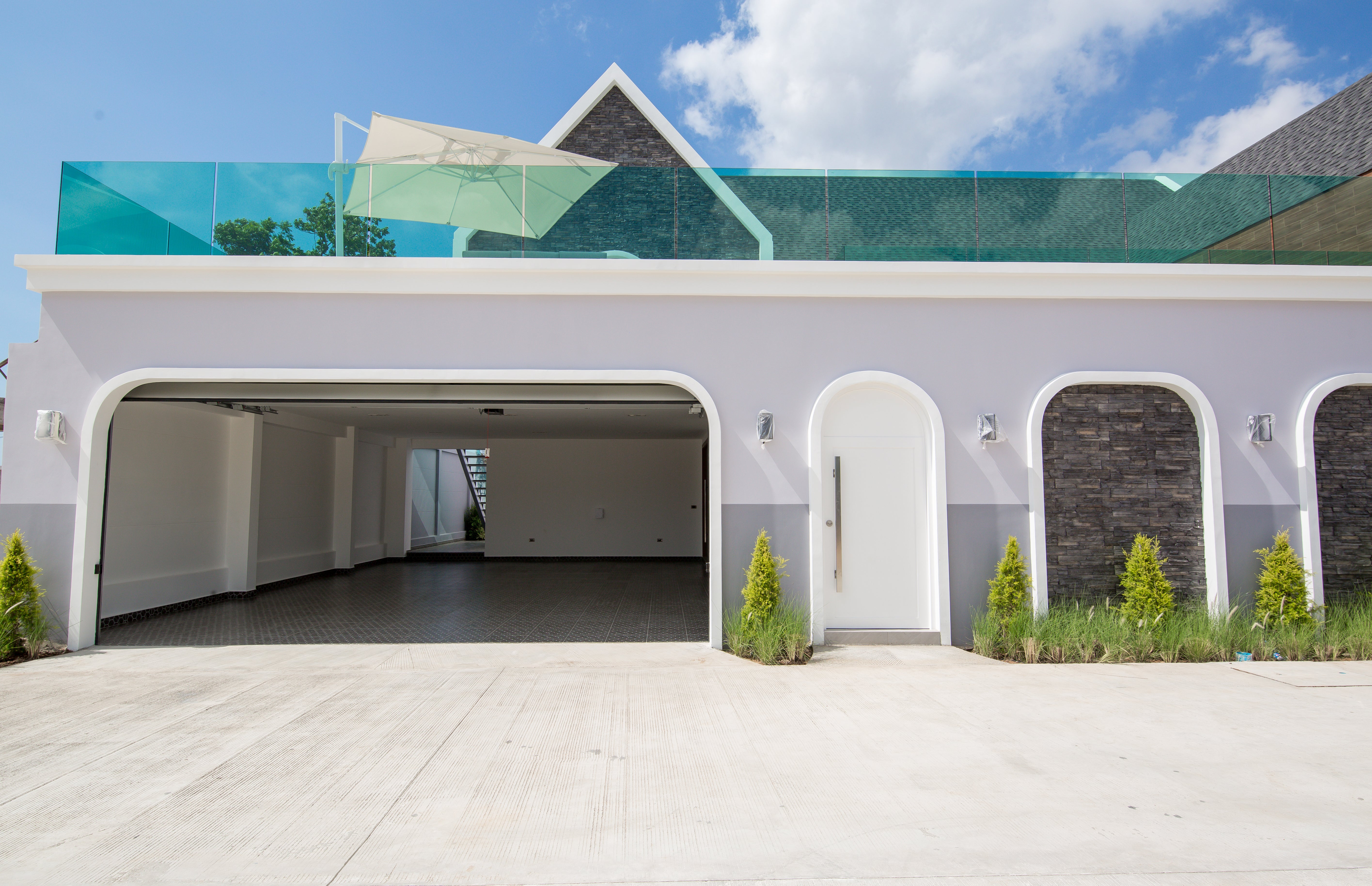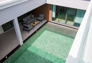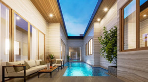 Each residence features a private saltwater jacuzzi pool, European and Thai kitchens, a versatile mezzanine rooftop above the garage, and covered car parking for two vehicles