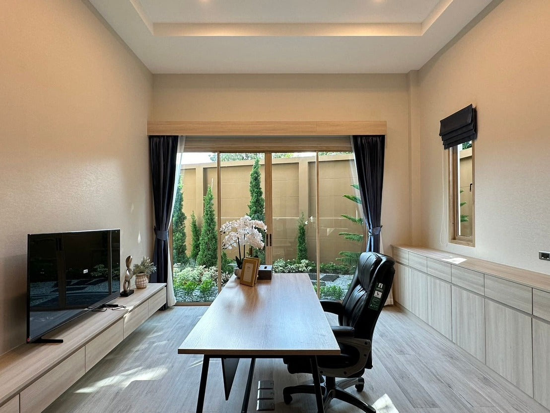 Residents enjoy the peace of a serene suburban setting while remaining close to international schools, golf courses, shopping destinations, dining establishments, and Pattaya’s renowned beaches.