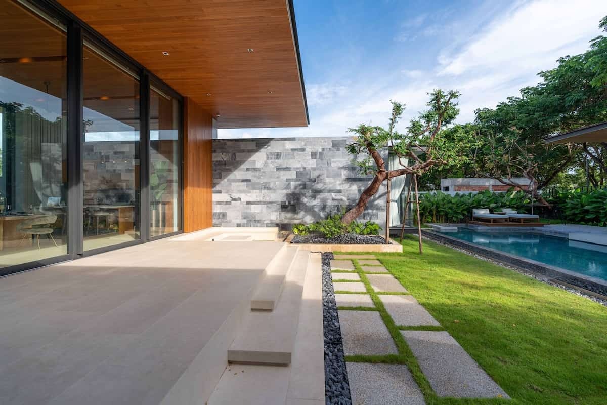 This villa rises gracefully within lush landscapes. Its contemporary architecture harmonizes with nature. Soaring ceilings and expansive glass walls are key features. These elements connect indoor and outdoor spaces seamlessly. The plot spans 1,098 square meters. Moreover, every detail reflects quality and refined taste.