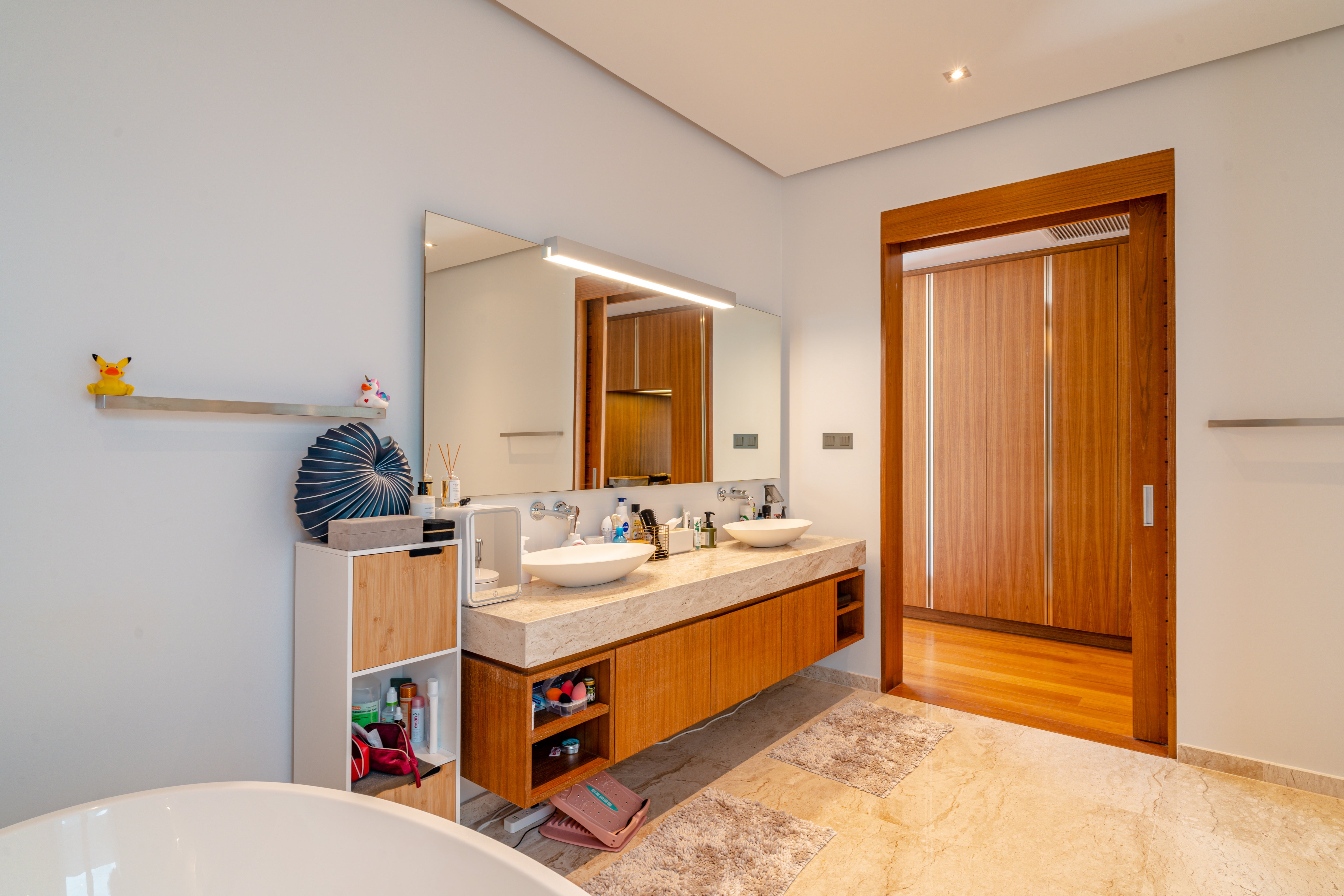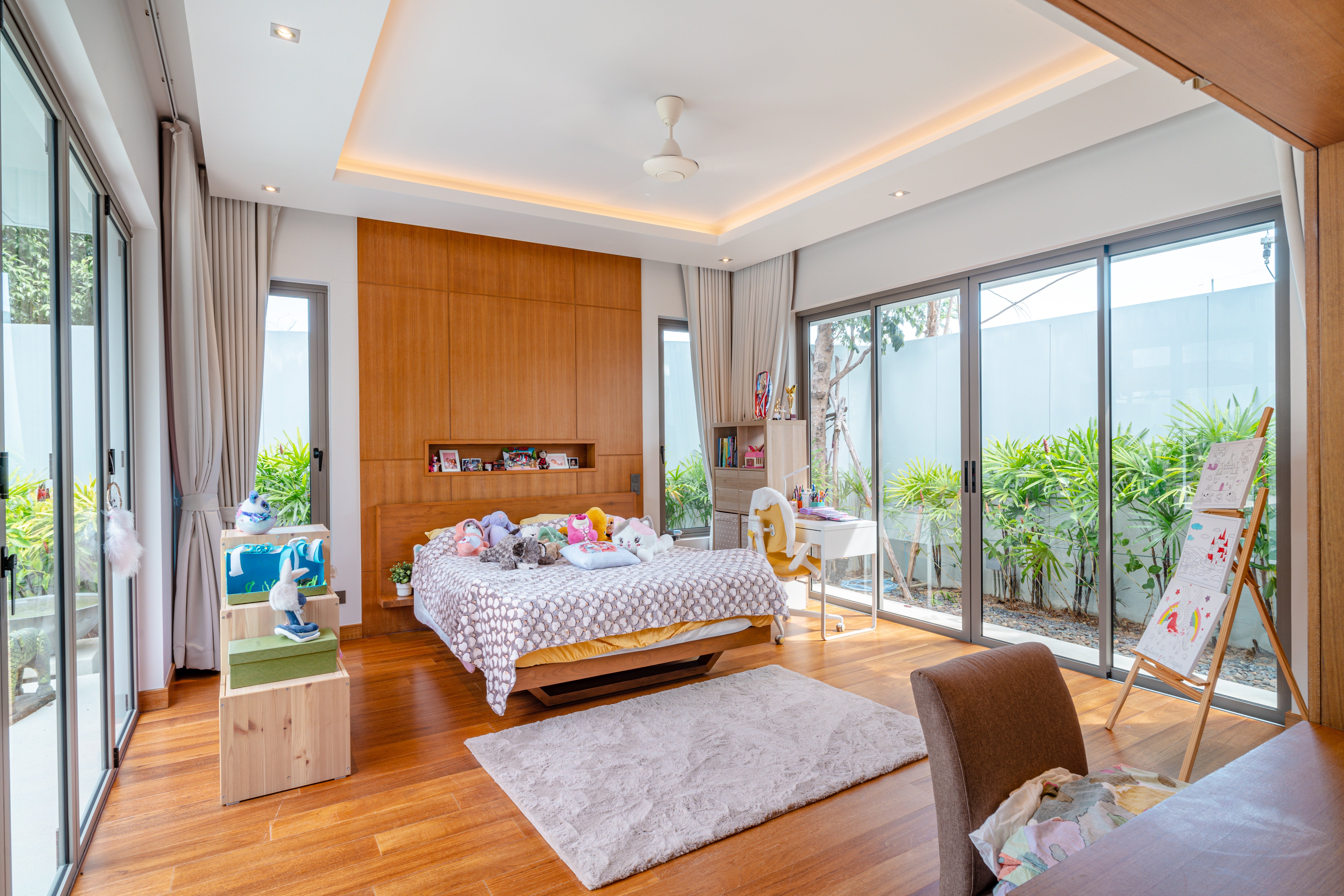 This exclusive luxury villa Phuket offers 418 square meters of sophisticated built-up living space nestled on a generous 526 square meter plot. The architectural design is distinctly modern, featuring high-end finishes that radiate refined elegance throughout the three well-appointed bedrooms and four sleek bathrooms. As a true private pool villa, the property offers an immediate escape into a luxurious lifestyle within a secure gated community, complete with CCTV and reliable garbage collection service. Practicality is guaranteed with essential amenities like a maid’s room, dedicated storage, a luxurious walk-in wardrobe, and a soothing bathtub. Every comfort has been considered, from full air-conditioning to stylish curtains and built-in wardrobes.