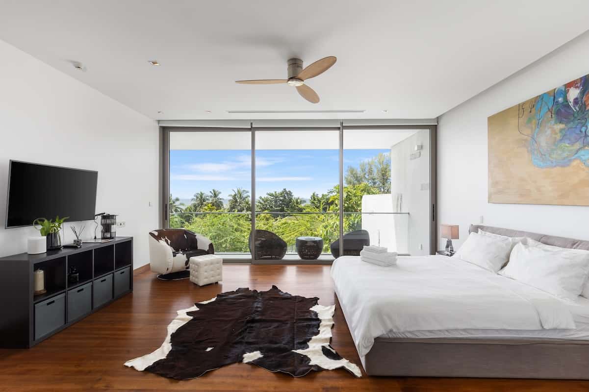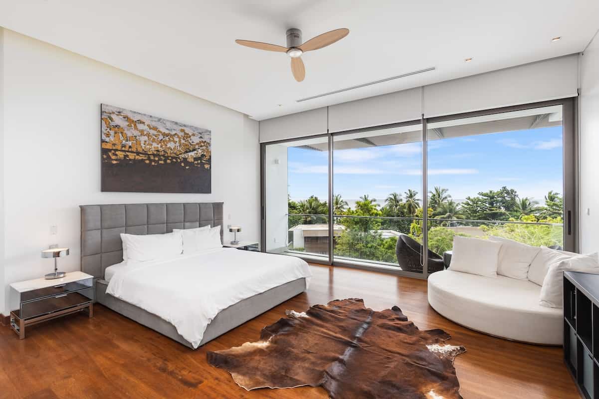 Master Suite The upper-level master suite features a private balcony with partial sea views, a spacious walk-in dressing area, and an ensuite marble bathroom with a freestanding bathtub for indulgence.