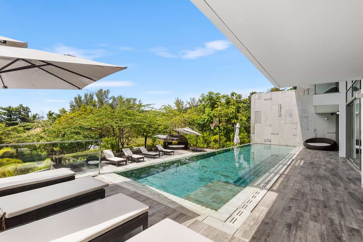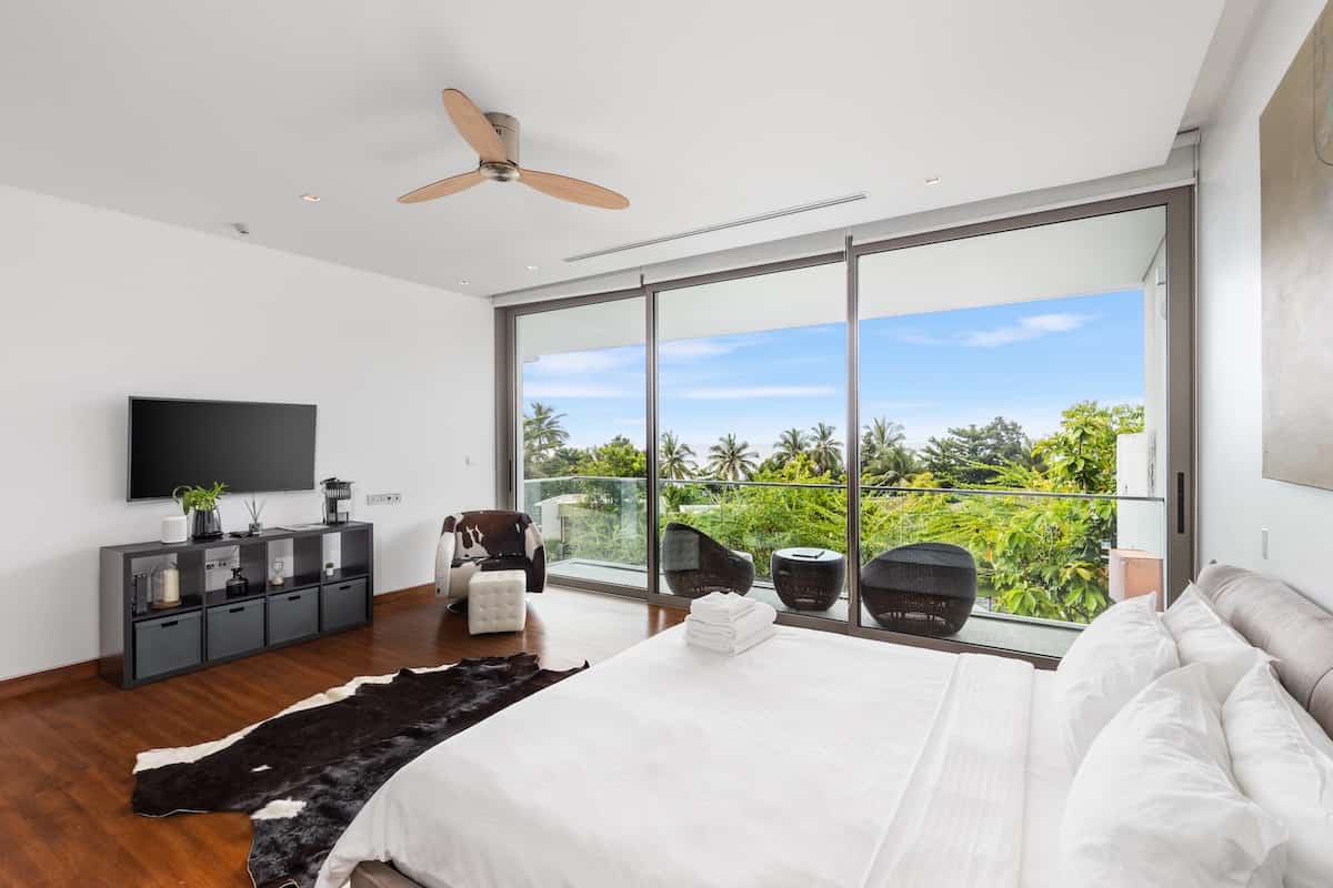Malaiwana Patio Duplex for Sale Naithon, experience refined island living in this elegant four-bedroom Patio Duplex at Malaiwana Estate. This sophisticated residence offers seamless indoor-outdoor living, with full-length glass doors opening to a stunning pool terrace. It is designed with understated luxury and provides everything needed for an idyllic tropical lifestyle.