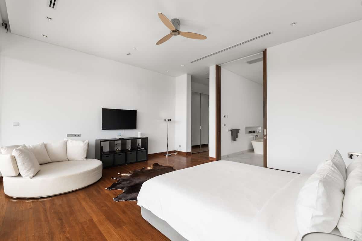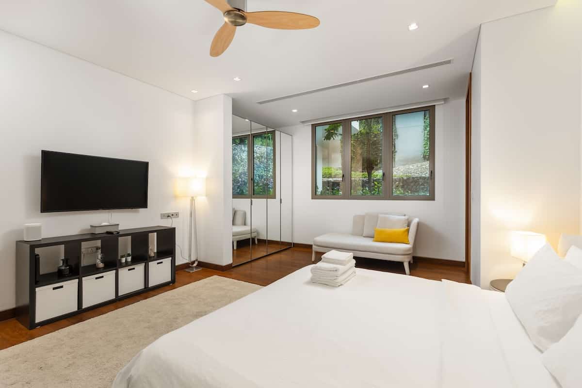 Second Master Suite The second master suite mirrors the elegance of the master, offering a private balcony, lounge seating, a king-size bed, and an ensuite bathroom with a luxurious bathtub.