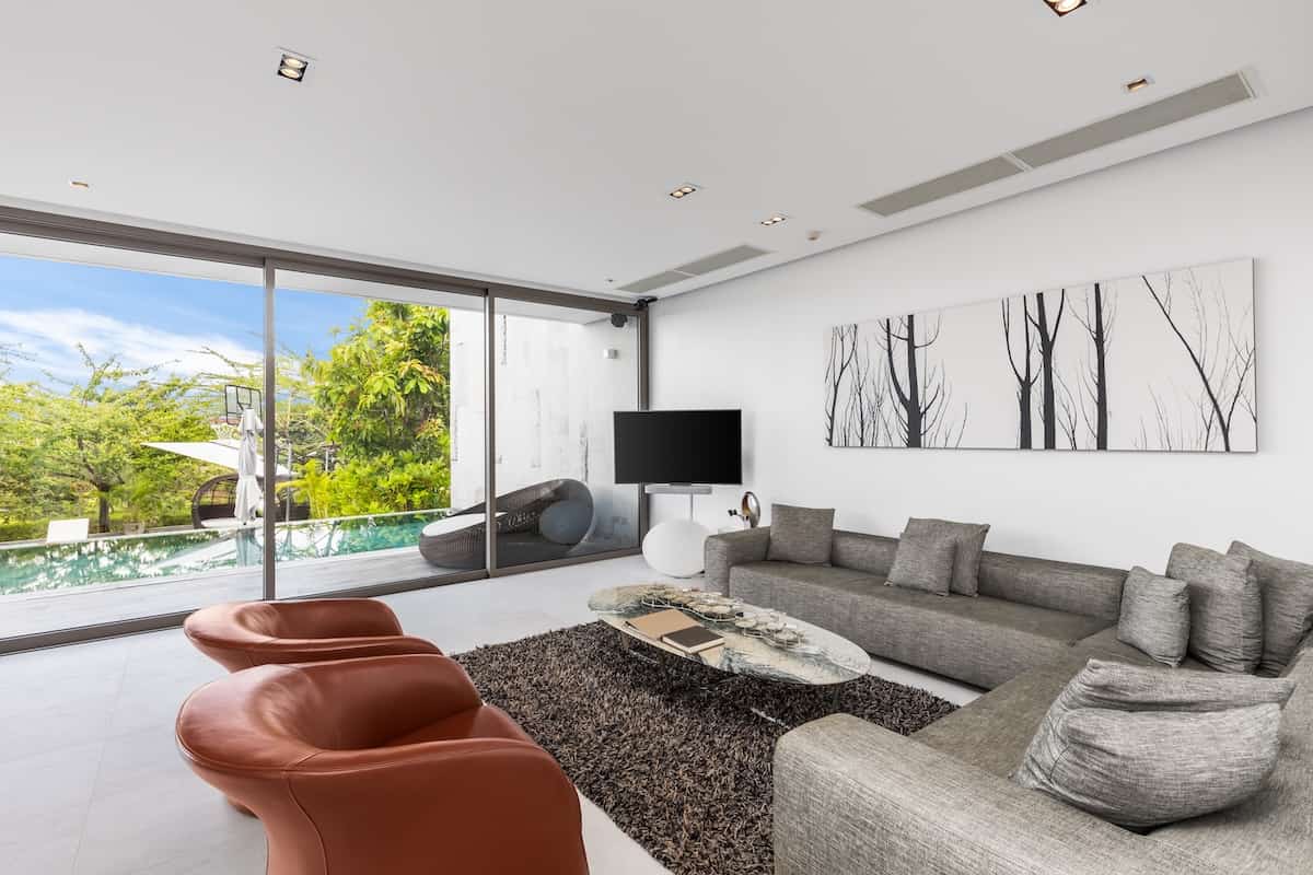 This exclusive villa is available for USD 1.8 million. The Thai Baht price shown is an approximation of this figure. Please check the exchange rate to get the accurate THB price.