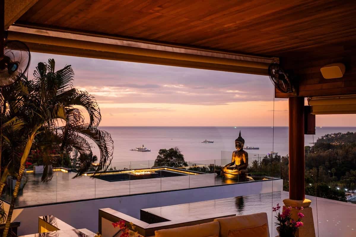 Perched majestically on Surin Hill, this spectacular 9-bedroom villa for sale offers unobstructed panoramic views of the Andaman Sea. Just a 10-minute stroll from the golden sands of Surin Beach, the property combines perfect privacy with convenient access to Phuket’s finest attractions. At the base of the hill, vibrant local life unfolds with charming markets, boutique shops, and casual dining spots.