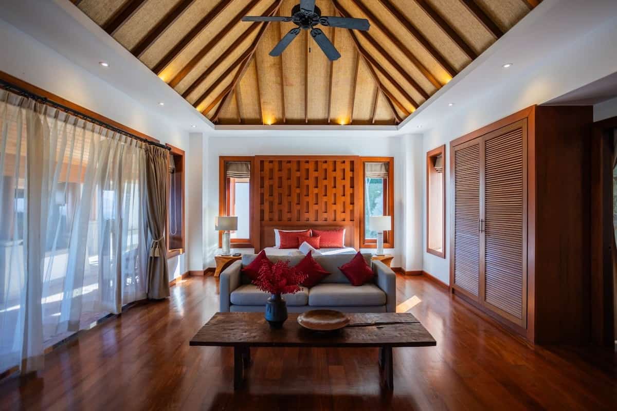 The villa’s crown jewel is its 18-meter infinity pool, blending seamlessly with the horizon. Adjacent to the pool, a spacious outdoor lounge area invites relaxation while soaking in the mesmerizing turquoise waters. For unforgettable evenings, the traditional Thai-style sala provides an idyllic setting for sunset dinners with loved ones.
