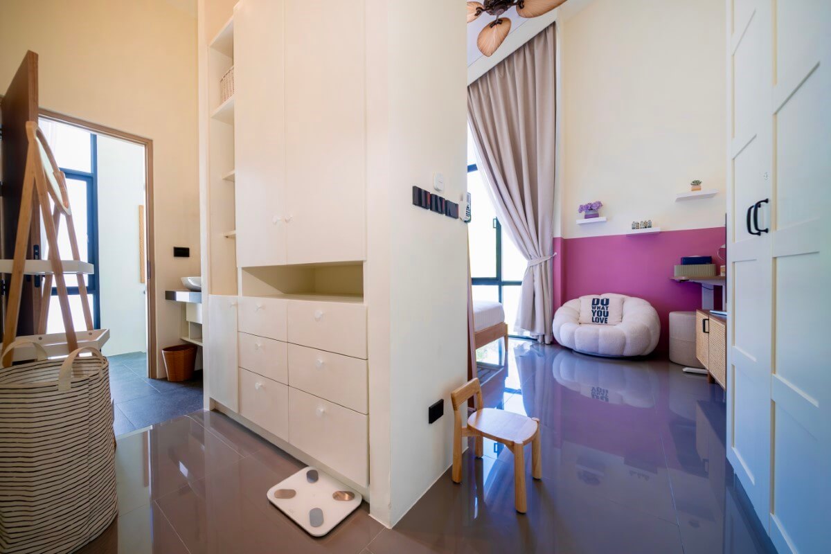 This stylishly eclectic saltwater pool villa for sale in Pasak, Cherng Talay, Phuket offers 4 bedrooms plus a maid’s room, making it the perfect family home. Full of warmth, laughter, and playful design elements, the vibrant use of colors and patterns adds a personal touch to this fully furnished residence. Whether you’re looking for a forever home, a grand holiday retreat, or a rental investment, this villa is ready to meet every need.
