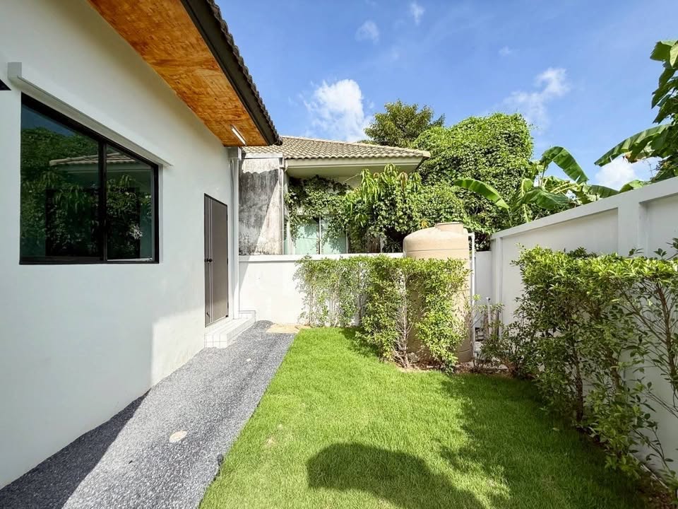 Discover the charm of modern island living with this beautifully designed corner home in Thalang, Phuket. Set on a generous land plot of 52 square wah (208 square meters), the property offers three spacious bedrooms and two elegant bathrooms, making it a perfect choice for families, retirees, or anyone seeking a serene lifestyle in one of Phuket’s most desirable residential zones. The home has been thoughtfully extended to include a stylish built-in kitchen with hood and gas stove, as well as a covered carport for convenience. The landscaped garden adds a touch of greenery, creating a peaceful setting that enhances the overall quality of living.