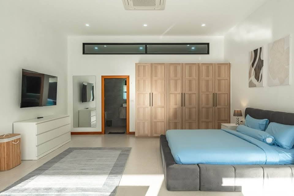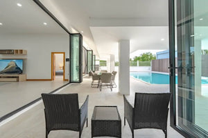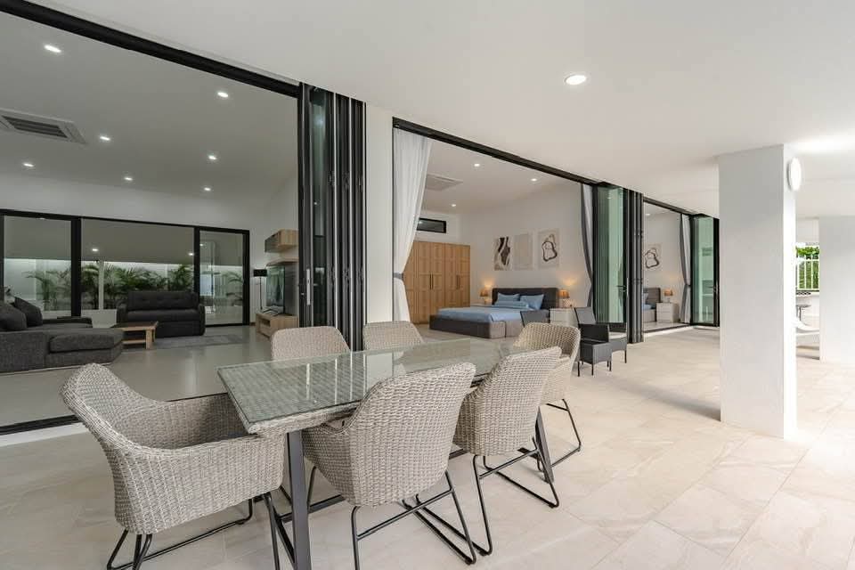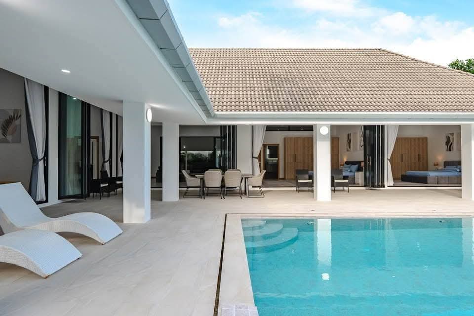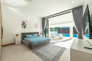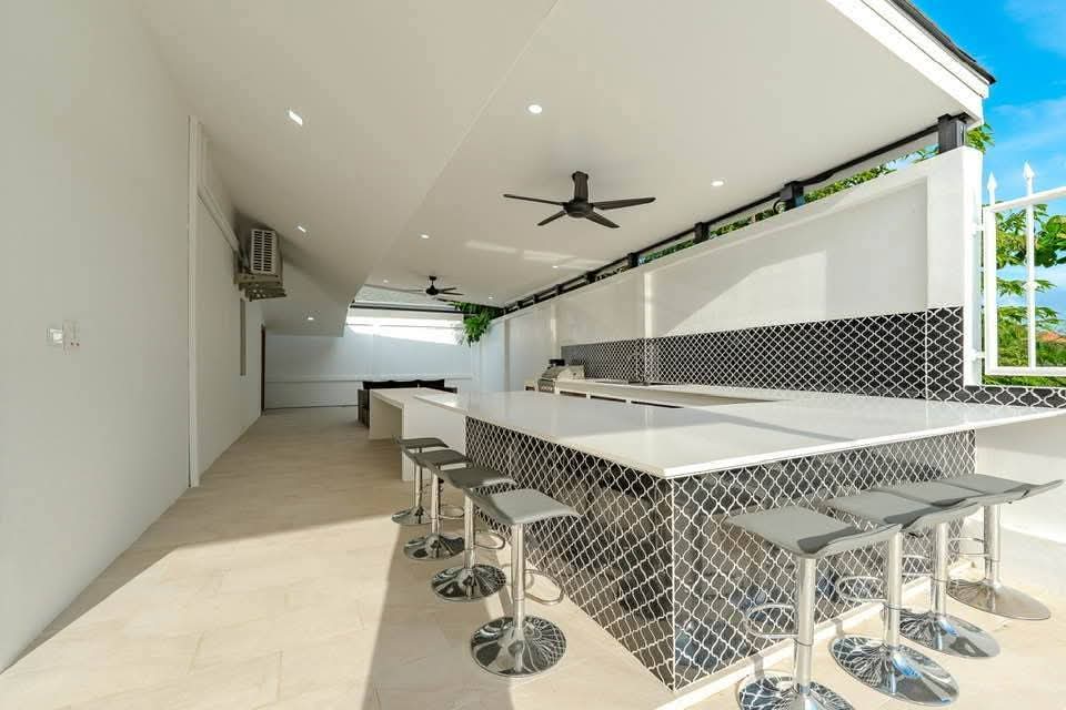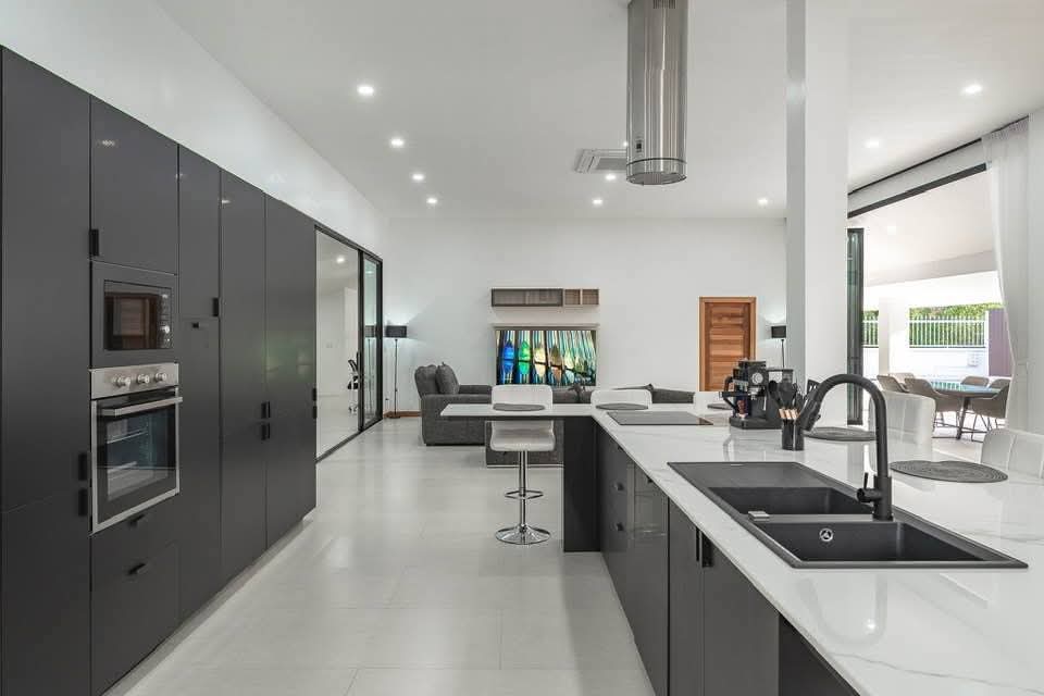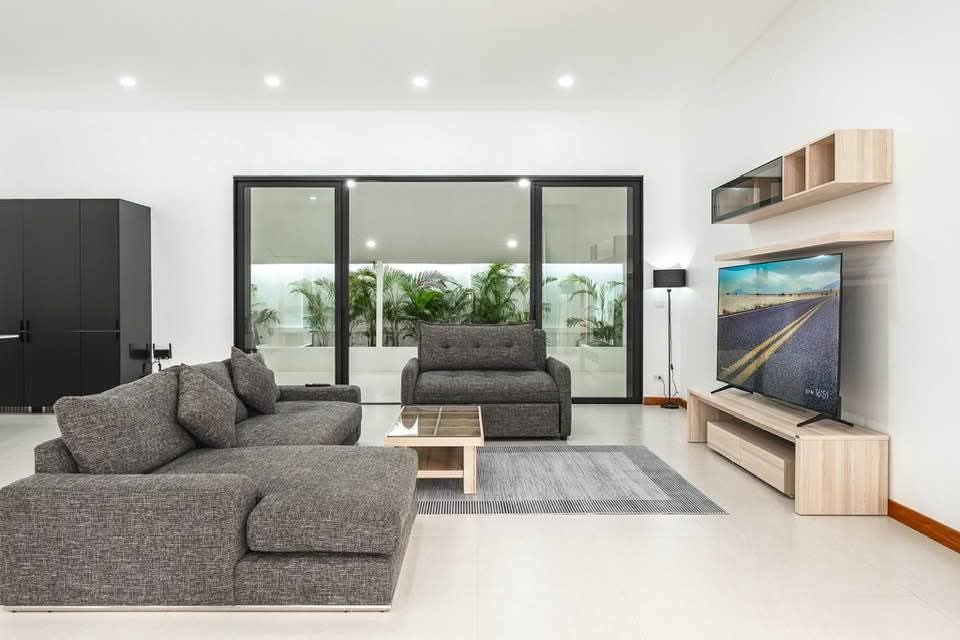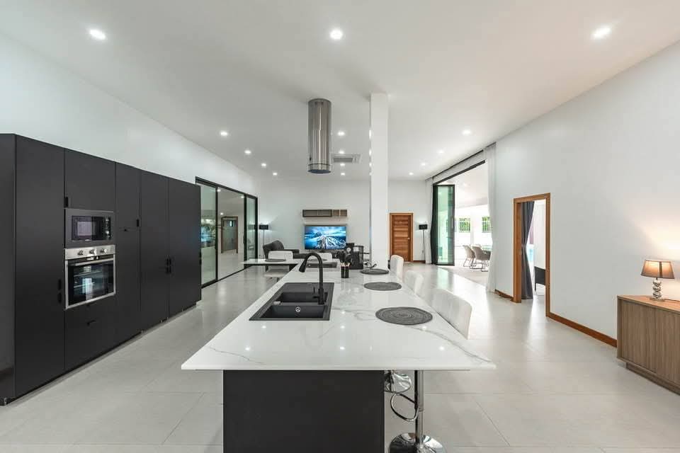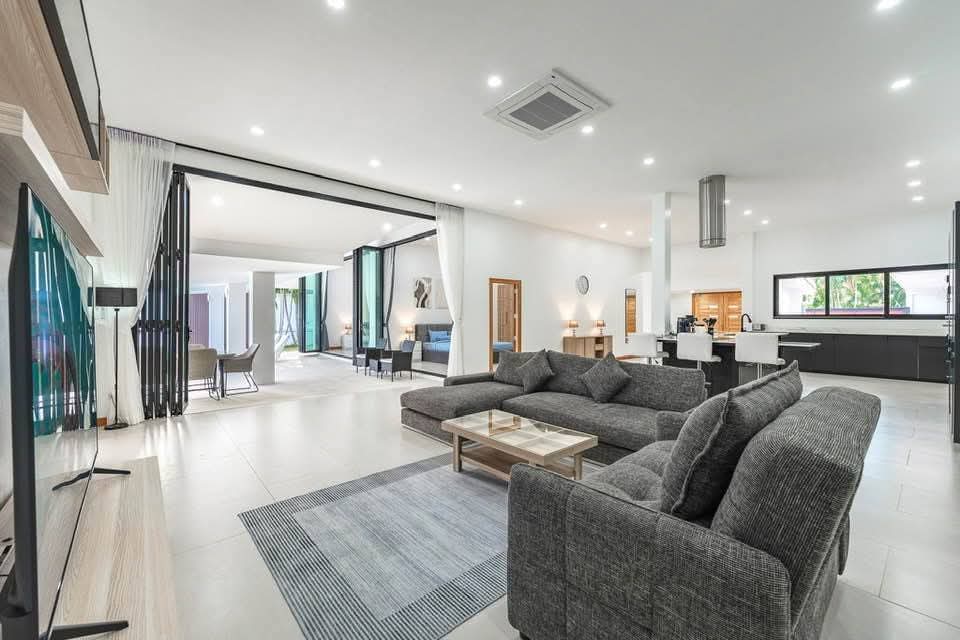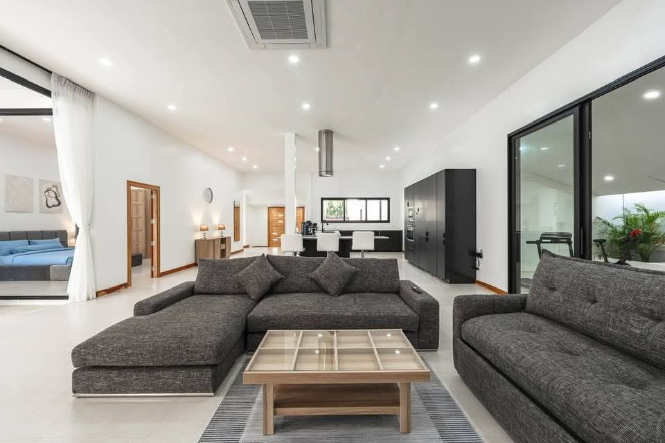 Located on one of the most sought-after residential roads in Rawai, this newly renovated and exceptionally spacious 4-bedroom, 6-bathroom villa is situated at the end of a tranquil cul-de-sac. With its high-end finishes and impressive 3.8-meter-high ceilings, this home exudes luxury and sophistication.