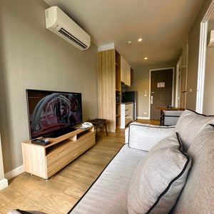 This tropical-inspired condominium in the heart of Bangtao, Phuket, offers the perfect balance of tranquility and convenience, making it an excellent choice for both homeowners and investors seeking entry into the thriving Phuket real estate market. Perched on the 5th floor, this one-bedroom, one-bathroom unit spans 33 sq.m. and showcases breathtaking country and mountain views, creating a serene private retreat surrounded by natural beauty. The layout is thoughtfully designed with a bright living area, functional kitchen, and private balcony, allowing natural light and breezes to flow seamlessly throughout the space. Fully fitted with built-in furniture and air-conditioning, this residence blends modern style with practical living, ensuring move-in readiness for buyers who prioritize comfort and convenience.