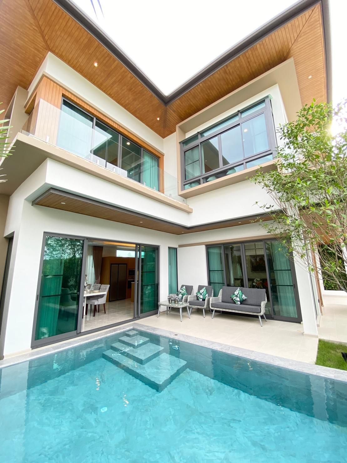 Discover the pinnacle of modern, effortless living at this brand new, meticulously designed private pool villa nestled in the prestigious Pasak area of Cherngtalay. This stunning two-story residence offers an unparalleled opportunity to secure a premier rental in the heart of Phuket's most desirable residential enclave. With an expansive built-up area of 352 square meters, this luxury villa Phuket provides generous living spaces, seamlessly blending contemporary design with tropical comfort. The property boasts three spacious bedrooms plus an additional room for versatile use, accompanied by four elegantly appointed bathrooms, ensuring every resident enjoys a sense of privacy and indulgence. This home, fully furnished to a high standard, is a perfect find for anyone seeking a hassle-free transition into a luxurious lifestyle.