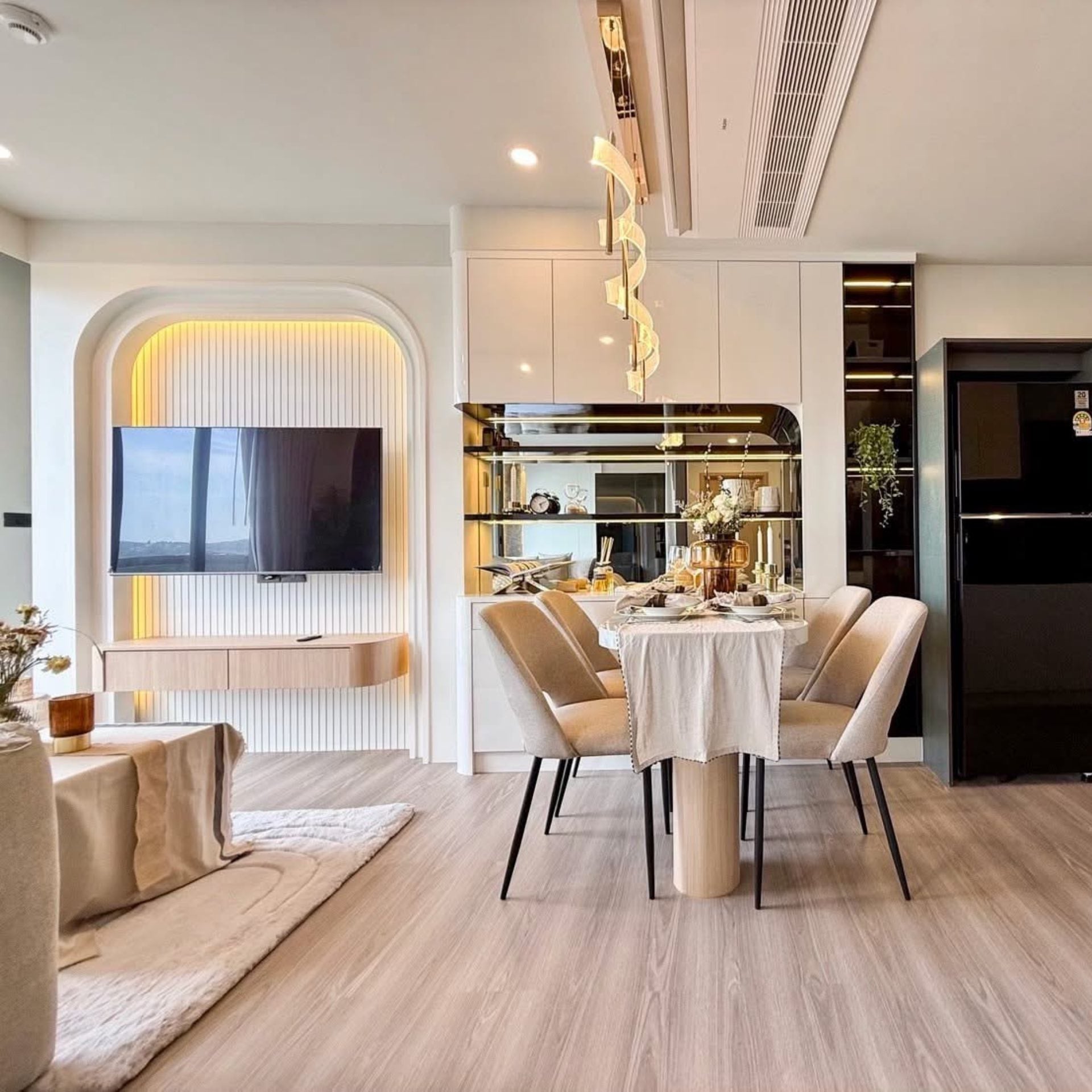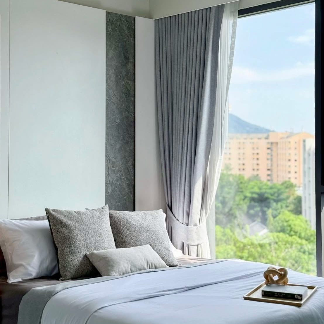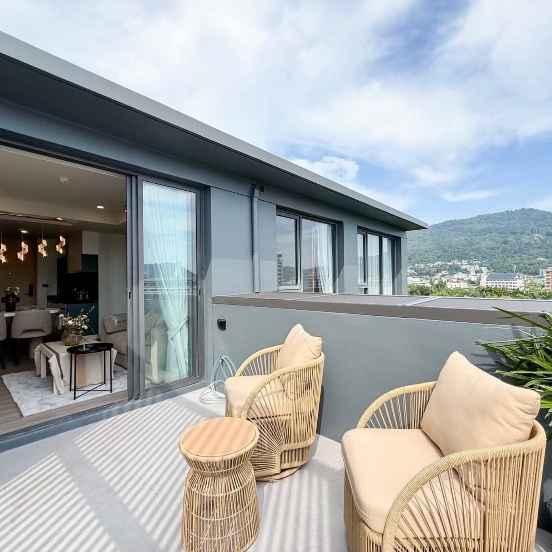 This exquisite condominium in Patong, Phuket, offers the perfect combination of modern comfort and resort-style living. Positioned on the 7th floor, the unit spans 65.32 sq.m. and features two spacious bedrooms and two elegantly designed bathrooms, making it ideal for families, couples, or those seeking a stylish holiday home Phuket. Fully furnished with premium built-in furniture and top-quality materials, the residence ensures both comfort and sophistication. Floor-to-ceiling windows invite natural light while framing serene views of the pool and surrounding mountains, creating a sense of openness and tranquility.