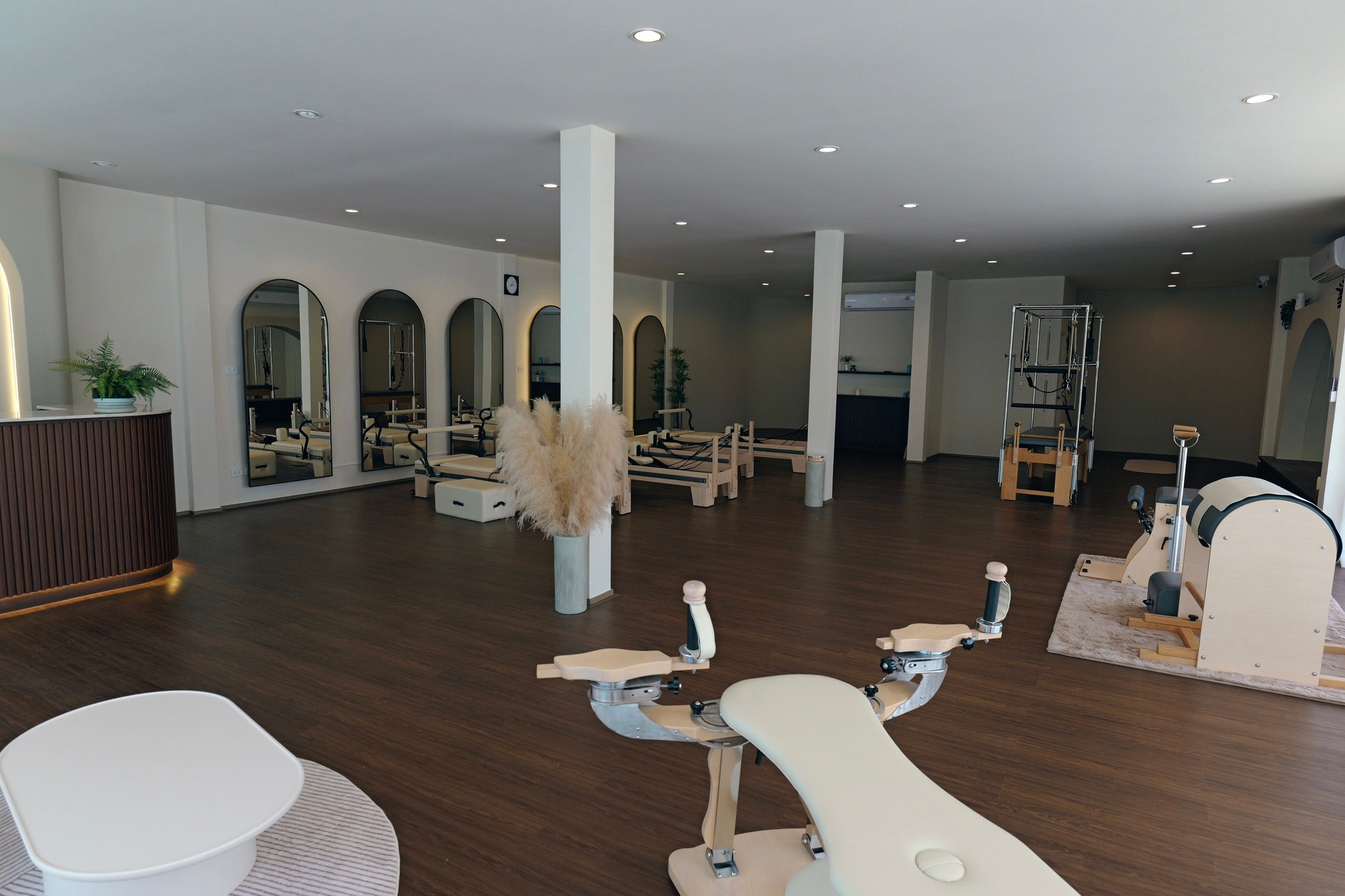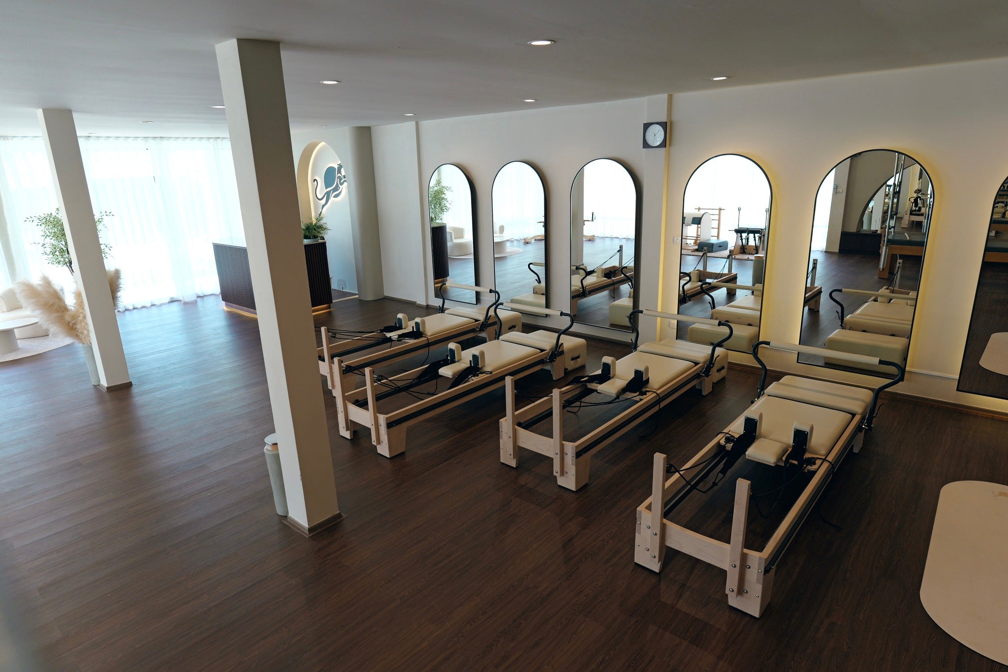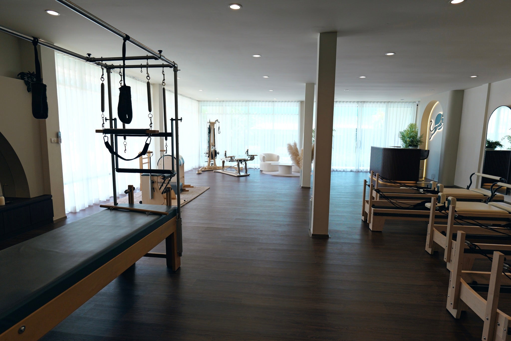 Spanning 180 sq.m., this spacious and airy studio has been thoughtfully designed to provide a calming yet energetic environment. The open-plan layout features large mirrors, natural light, and flexible spaces ideal for Pilates, yoga, or functional training. The studio comes fully equipped with high-quality professional apparatus, including 4 Reformers, 1 Cadillac, 1 Pilates Chair, 1 Ballet Bar, and 1 Gyrotonic machine, ensuring a turnkey setup for immediate business operation. The open area is also perfect for hosting group sessions, wellness workshops, or even a small café corner providing additional income potential.