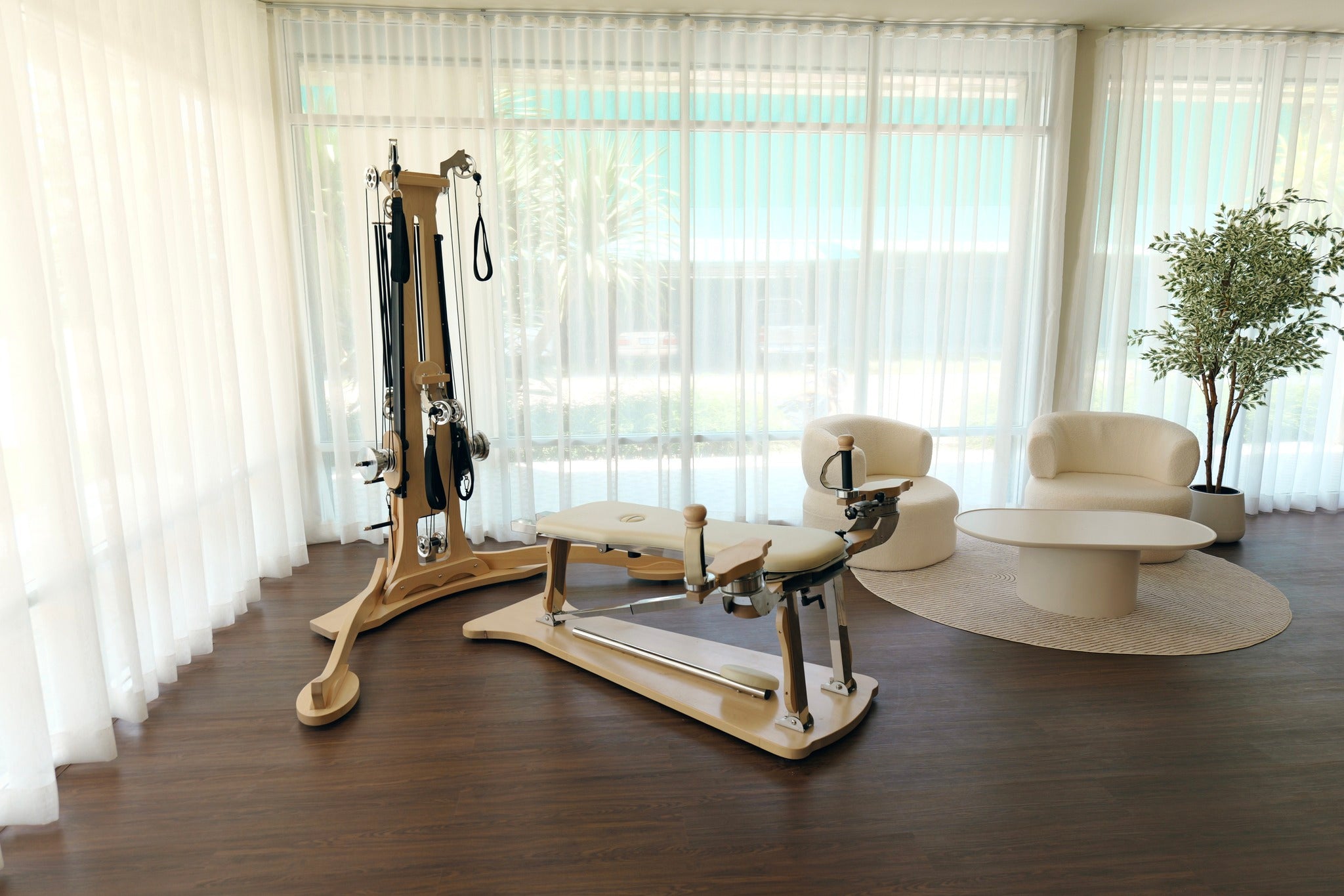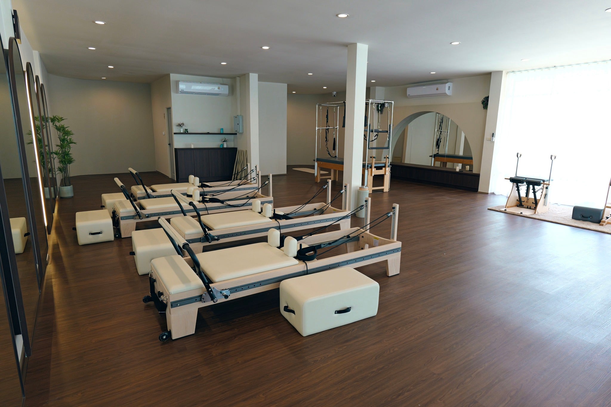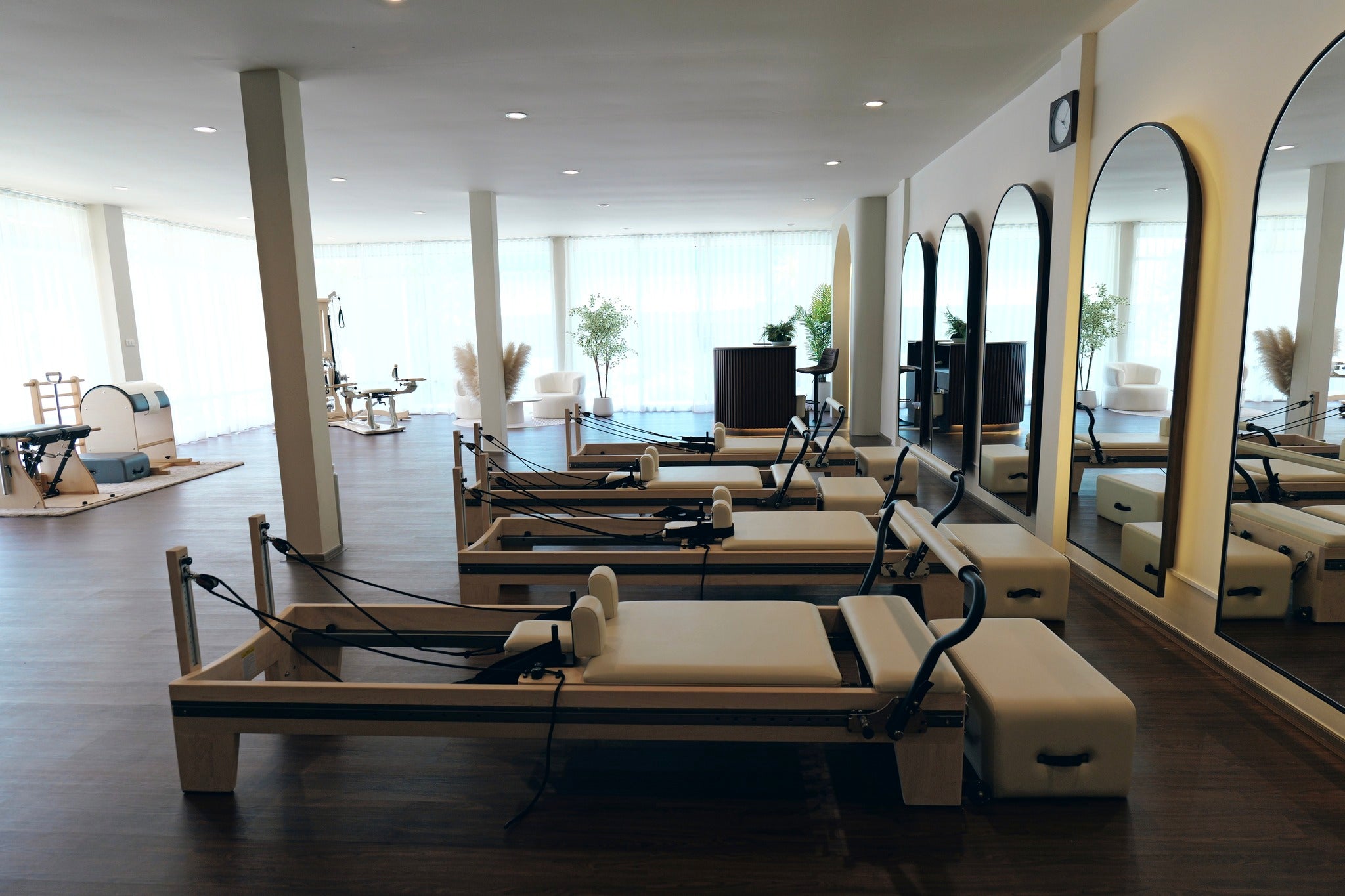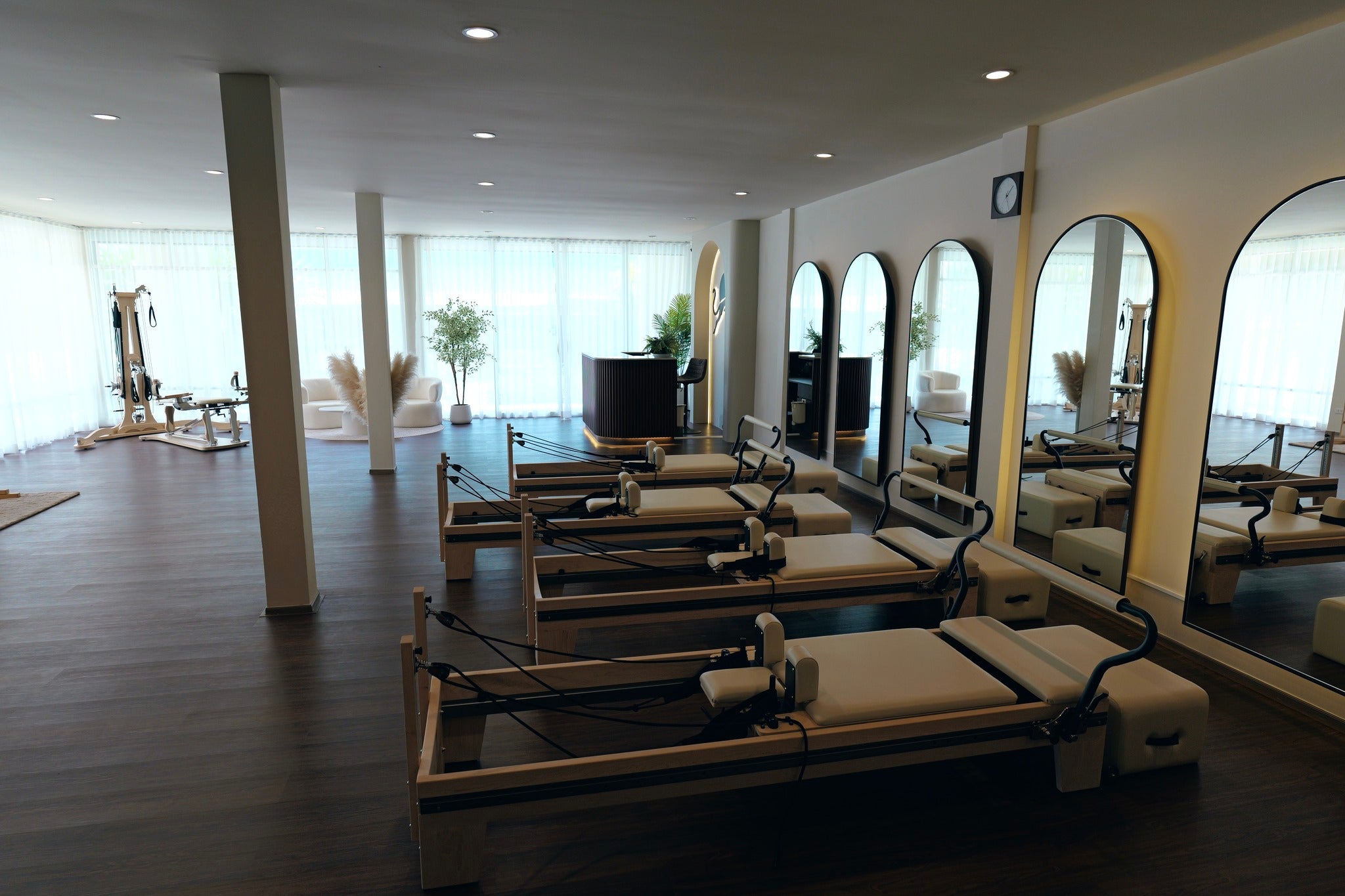 Spanning 180 sq.m., this spacious and airy studio has been thoughtfully designed to provide a calming yet energetic environment. The open-plan layout features large mirrors, natural light, and flexible spaces ideal for Pilates, yoga, or functional training. The studio comes fully equipped with high-quality professional apparatus, including 4 Reformers, 1 Cadillac, 1 Pilates Chair, 1 Ballet Bar, and 1 Gyrotonic machine, ensuring a turnkey setup for immediate business operation. The open area is also perfect for hosting group sessions, wellness workshops, or even a small café corner providing additional income potential.
