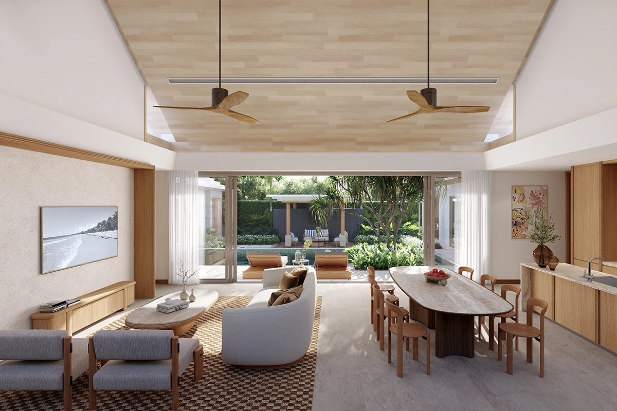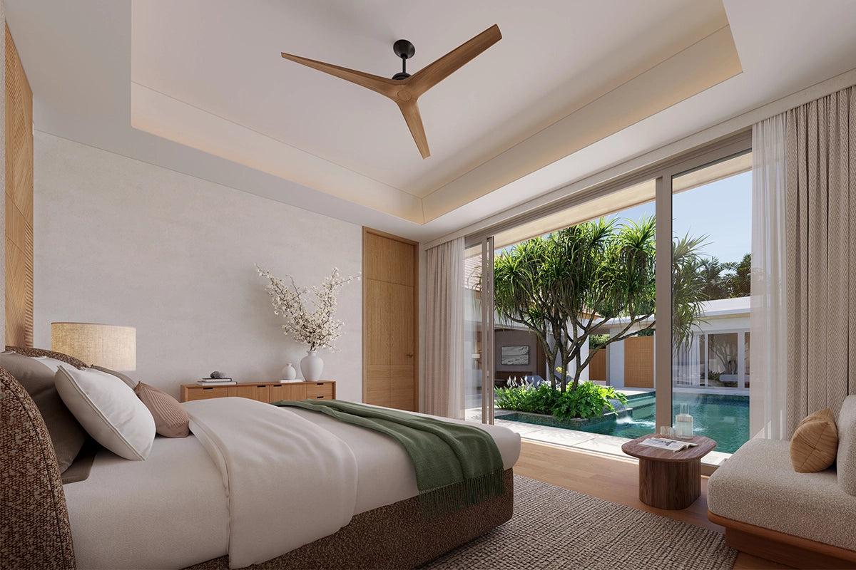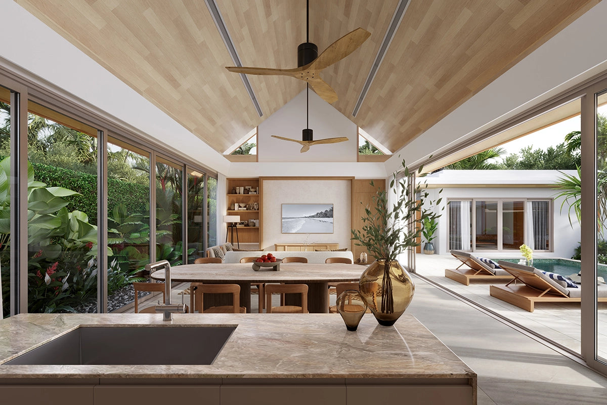 Inspired by the natural curves of waves and sand, the design fuses tropical tranquility with a prime location just minutes from vibrant lifestyle hubs, international schools, Phuket Airport, and iconic beaches. Blending Thai architectural heritage with refined modernity, the villas are crafted by a team influenced by the vision of world renowned designer Edward Tuttle.