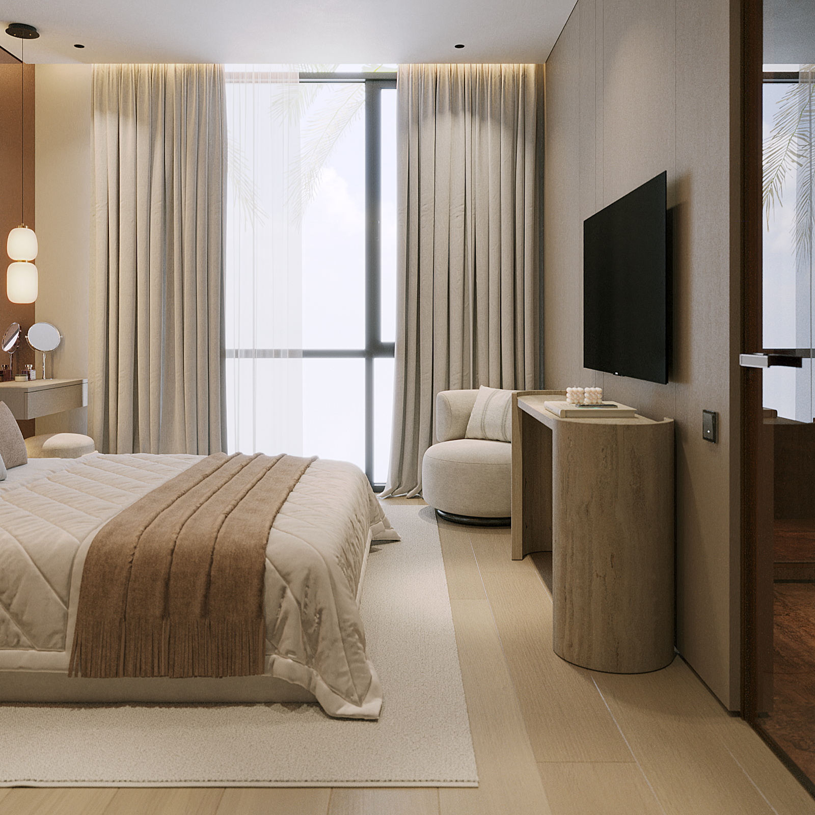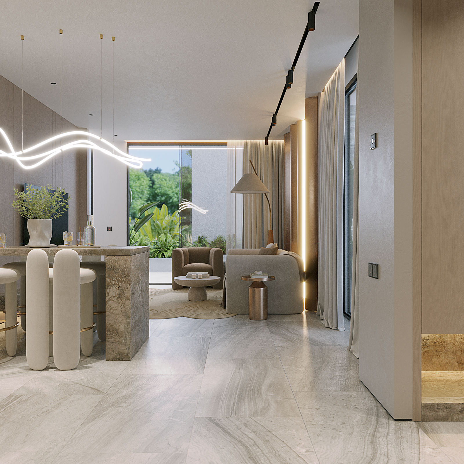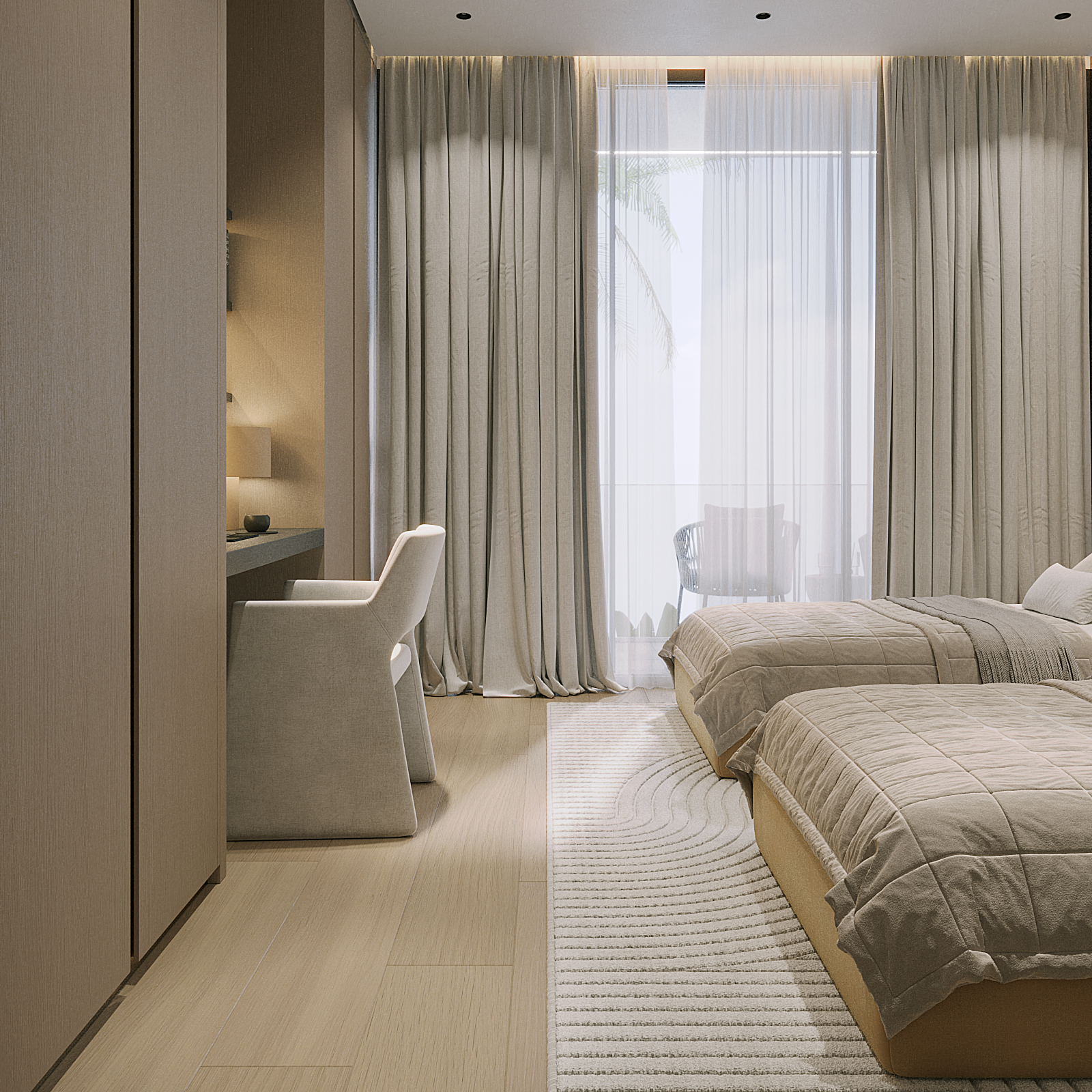Residents are welcomed into a world of premium amenities, including a serene wellness spa, rejuvenating sauna, cutting edge fitness center, stylish restaurant and bar, expansive resort-style pool, sports facilities, dedicated children’s club, and a full suite of five-star hospitality services. Lush tropical greenery flows throughout the grounds, creating an atmosphere of peace and privacy where modern elegance harmonizes with mindful living.